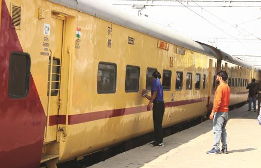 Making Public Transport Safe to prevent the spread of the virus, Railway staff continued their routine sanitizing operation in Coaches on Friday at Railway Station Jammu.