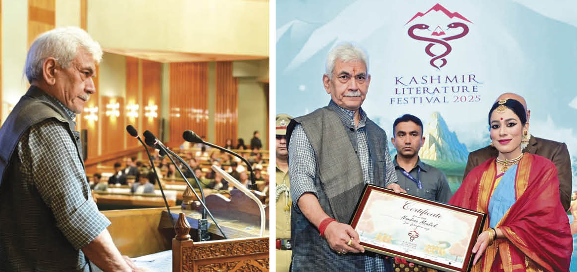Jammu, Oct 11: In a hard-hitting statement, Lieutenant Governor Manoj Sinha on Saturday revealed that writers and media figures in Kashmir were forced to promote narratives "pushed from across the border" due to fear of terrorists and their ecosystem, distorting the region's true story for decades.