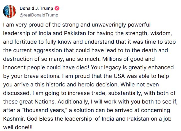 The Indian government expressed strong displeasure over a social media post by US President Donald Trump, who offered to mediate between India and Pakistan to resolve the Kashmir dispute, a move that has sparked diplomatic tensions.