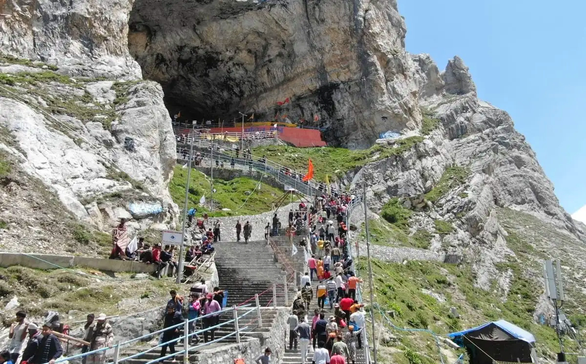 The convoy was returning after pilgrims had their darshan at the cave shrine.