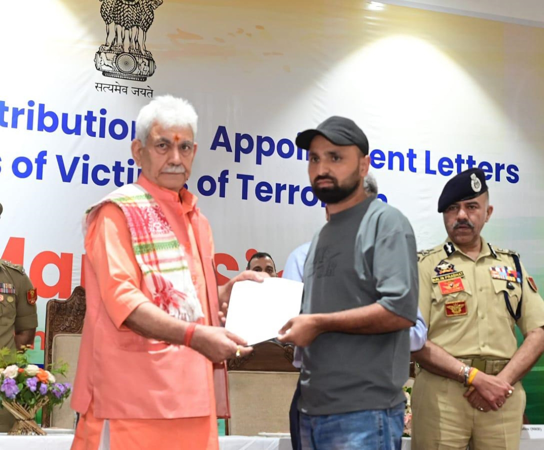 | Terror victim families, forsaken and forgotten, suffered silently for decades: LG Sinha | | Handsover appointment letters to NoKs of terror victims | |