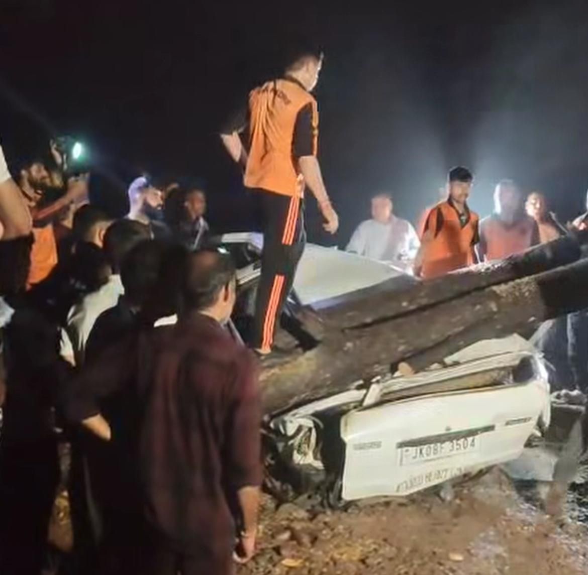 Udhampur, Sept 12: A tragic incident took place on Thursday evening at Kaldi, Udhampur, when a large pine (cheed) tree fell on a Maruti Omni van (registration number JK08 3504), killing one passenger on the spot and leaving the driver injured.