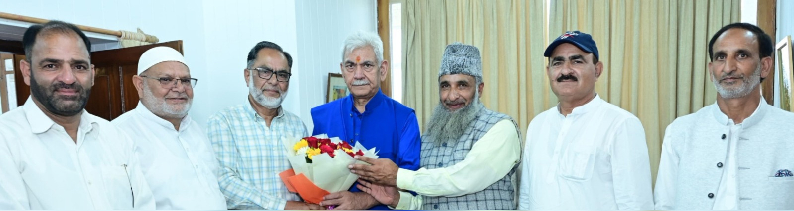 SRINAGAR, Sept 15: A delegation of Kashmir Valley Fruit Growers Cum Dealers Union led by its Chairman Bashir Ahmad Basheer called on Lieutenant Governor Manoj Sinha, today. The members of the delegation expressed their gratitude to the Prime Minister Narendra Modi and Lieutenant Governor Manoj Sinha for the new Parcel Train from Budgam to Adarsh Nagar, New Delhi. They also put forth various welfare issues of fruit growers and traders from the valley including smooth moveme... | |