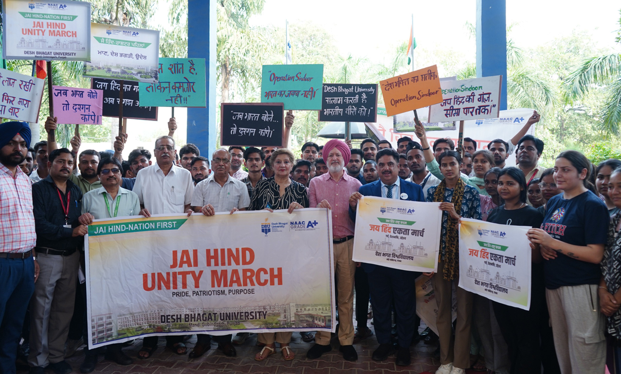 AGENCIES MANDI GOBINDGARH, May 19: An impactful awareness rally on the theme "Rashtra Pratham" was organized by the NSS Cell of Desh Bhagat University, with the goal of instilling a deep sense of patriotism and national unity, particularly among the youth. The rally commenced from the university campus and concluded at Village Shaunti, covering a 7-kilometer route. A large number of students, faculty, staff, and local residents participated enthusiastically, chanting patriotic slogans like "Bharat Mata Ki Jai" and carrying placards promoting national pride, unity, and civic responsibility. The rally was flagged off by Chancellor Dr. Zora Singh and Pro-Chancellor Dr. Tajinder Kaur, who praised the initiative and encouraged everyone to uphold the values of "Rashtra Pratham"-putting the nation above personal or regional interests. Also present were Vice Chancellor Dr. Harsh Sadawarti, Pro-Vice Chancellor, Advisor to Chancellor Dr. Virinder Singh, Dr. Surjeet Patheja, Director Media and faculty members, showing strong institutional support for the cause. The rally aimed to remind citizens of their duty towards the nation and to promote core values such as integrity, discipline and civic responsibility. The event concluded with a motivating address by Dr. Harsh Sadawarti, who thanked participants for their enthusiastic involvement and emphasized the importance of collective national effort in building a strong and united India. |