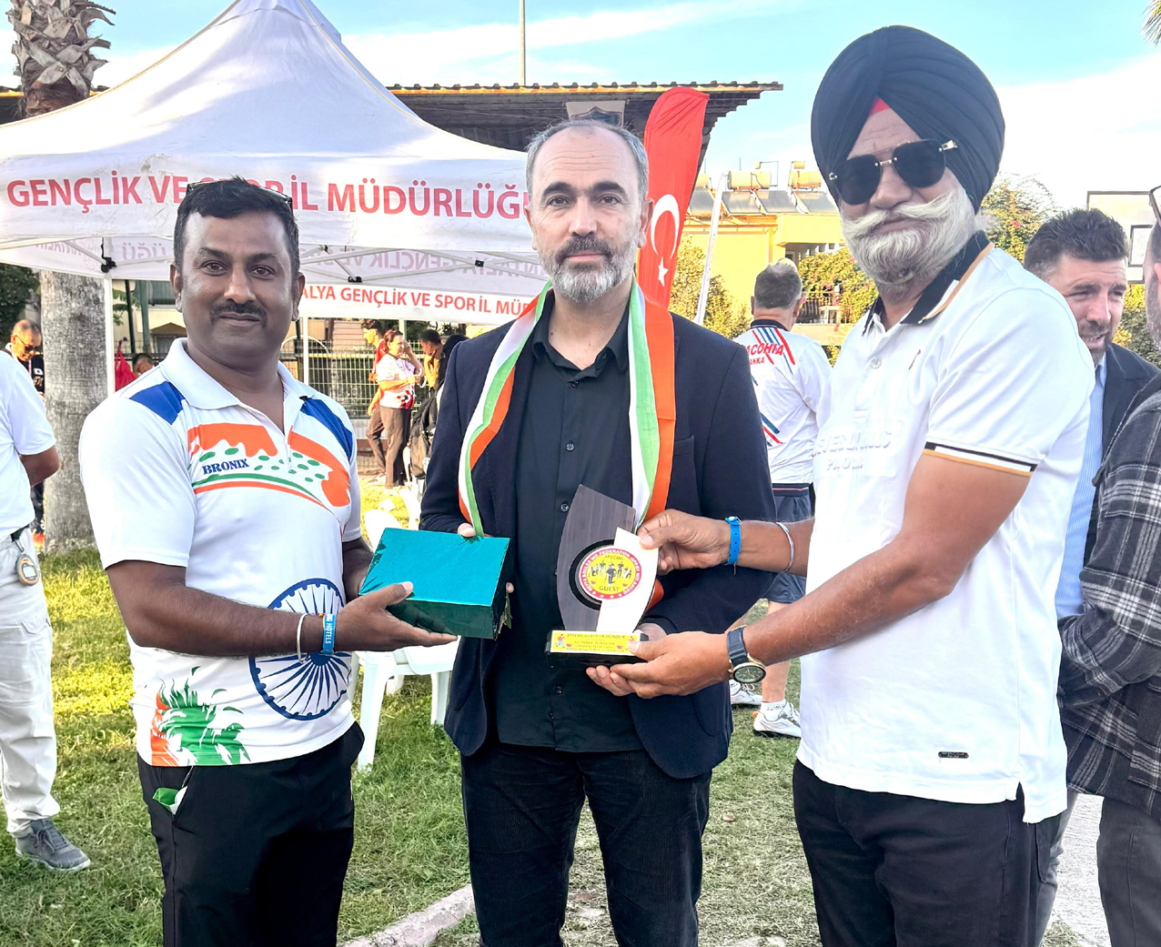 NEW DELHI, Nov 15: Today, the members of the Raffa Boules India Federation honoured Dr. Turkman, President of the CBI, on the occasion of the Kemer Open International Championship, being held in Turkey from 6th to 12th November 2025, organised by the Turkiye bocce Bowling ve dart Federation under the banner of CBI. On this occasion, Team India participated in the kemer Open Championship in Turkey. Sucha Singh and Sunny Nanda represented India in the Men's Doubles event, where Team India secured the 5th position. o 1st - Turkey o 2nd - Slovakia o 3rd - Hong Kong o 4th - Japan During the event, President Dr. Turkman met teams from all participating countries and extended his best wishes to the players. He assured Team India that he would support all efforts to promote the sport of raffa boules in India and also updated them on upcoming international events. At the end, Sunny Nanda, Secretary, Raffa Boules India Federation, expressed confidence that Team India will perform even better in the next championships, with increased participation and stronger performances. |