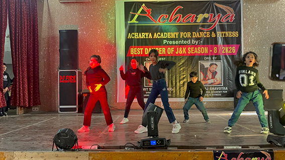 Jammu, Jan 14: The Acharya National Culture Activity NGO successfully organised the “Best Dancer of J&K 2026 – Dance & Fancy Dress Competition” at Government Polytechnic College, Vikram Chowk, Jammu. The event witnessed enthusiastic participation from children representing various schools and reputed dance academies across Jammu, who mesmerised the audience with their talent, confidence, and vibrant performances. The programme was graced by Chief Guest Mr. Amit Sharma, IAS, Director Census, Jammu, Kashmir and Ladakh. Prominent dignitaries included Mr. Devinder Seth, social activist; Mr. Jasmeet Singh, JKAS, RTO Jammu; Sh. Pritam Chand, Senior Leader BSP; Mr. Hitesh Badyal, Founder, Nirvana Academy; Sh. Subash Chander, Jammu and Kashmir Teachers Joint Action Committee; Mr. Nirmal Mattoo, noted singer; Mr. Gurpreet Singh; Mr. Deepak Kumar Pajgotra; Sh. Raj Shavotra, Show Director and Organiser; and Mr. Vikas Choudhary, Judge and Managing Director, Pulse Dance Academy graced the occasion as Guests of Honour. The dignitaries appreciated the high level of performances and applauded the confidence and creativity of the young participants. They emphasised that such cultural initiatives play a crucial role in nurturing artistic talent, boosting self-confidence, and providing a positive platform for children to express themselves. Results of the Competition were announced in various categories. In the Sub Junior Solo category, the first prize was bagged by Aadya Sharma, Aarya Gupta, and Samaira Gupta, while Siraj, Saanvi Rajput, Bhoomika, and Kriyan Gupta secured the second prize. The third prize went to Aadhya Sharma, Yashita Raj, Vidhaan Gupta, Trisha Kapoor, Sabera, Aadhya Gupta, and Manyata Verma. In the Fancy Dress Competition, Pavit Singh Bagga won the first prize, followed by Jiya Shavotra and Netanya Bagga as second prize winners, while Naman Mattoo and Urvi Mattoo secured the third prize. In the Junior Solo category, the first prize was awarded to Amaira, Sem, Kajal, Hargun, Adhvika, and Anaya, while the second prize went to Viaan Raj, Anvi, Naman Raj, Samaira, Anshika, Palak, Niklesh, and Meghna. The third prize was secured by Lovika, Navanya, Preeti Devi, Adwita, Dhrumit, Kiara, Manasavi, Udhnya, Taapsee, Lakshika, Dev Dogra, Khawaish, Divya, Pavika, Sanjana, Kyna, and Manasbani. In the Senior Solo category, Aditya Singh and Kamlesh secured the first prize, Hemshekha, Ayshi Sharma, Nawya Sharma, Shivalika, and Deepak Pop won the second prize, while Drishti Sharma, Diksha Sharma, Preeti Ahirwar, Bageshwari Sharma, Sanvi Bhatia, and Suzain claimed the third prize. In Group Dance, the Sub Junior Group First Prize was jointly won by Acharya Academy for Dance & Fitness, Shamrock School Narwal, and Naveen Shiksha Academy Narwal. In the Junior Group category, Acharya Academy for Dance & Fitness won the first prize, The Lion Dance Studio secured the second prize, and Acharya Academy for Dance & Fitness again bagged the third prize. In the Duo Category, the Sub Junior Duo First Prize went to Hinya & Mehar. In the Junior Duo category, Shivanya & Trisha secured the first prize, while Seerat & Sneha and Dhrumit & Naman jointly won the second prize. In the Trio Category, the Sub Junior Trio First Prize was bagged by Kaaranya, Hazel, and Hinaya, while Anamay, Medhansh, and Rida secured the second prize. The Senior Trio category winners were Mandy, Raghav, and Shubham. |