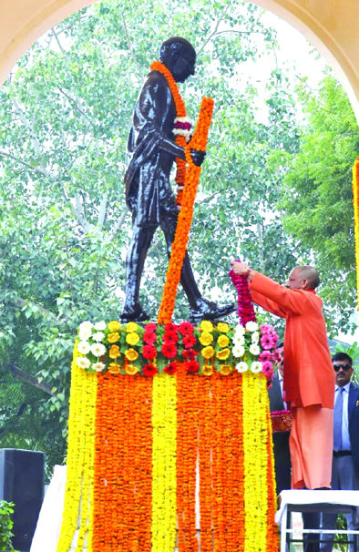 Early Times Report LUCKNOW, Jan 30: On the martyrdom day of the Father of the Nation, Mahatma Gandhi, Uttar Pradesh Chief Minister Yogi Adityanath paid heartfelt tributes by offering floral wreaths at the Gandhi statue located in Lucknow's GPO Park on Friday. In an atmosphere filled with reverence and respect, the Chief Minister garlanded the statue and bowed before Bapu. He then observed a moment of silence in his memory. CM Yogi also paid tribute to Mahatma Gandhi through his X handle and appealed to people to adopt his ideals. During the tribute ceremony, school children performed Mahatma Gandhi's favourite bhajans. The GPO Park resonated with the melodious tunes of 'Raghu Pati Raghav Raja Ram' and other soulful bhajans. The Chief Minister listened attentively for nearly 15 minutes. He appreciated the children's performance and also took photographs with them in front of the Gandhi statue. Earlier, paying tribute on his X handle, the Chief Minister wrote: 'On the martyrdom day of the Father of the Nation, Mahatma Gandhi ji, we pay our humble tributes. Revered Bapu's devotion to truth, unwavering non-violence and compassion for humanity continue to guide the world. Let us follow his ideals and contribute to a just, prosperous and developed India.' The event was attended by Deputy Chief Minister Brajesh Pathak, Mayor Sushma Kharkwal, MLAs Neeraj Bora and Jay Devi, MLCs Mahendra Singh, Mukesh Sharma and Ramchandra Pradhan, BJP Lucknow Mahanagar President Anand Dwivedi and other dignitaries. |