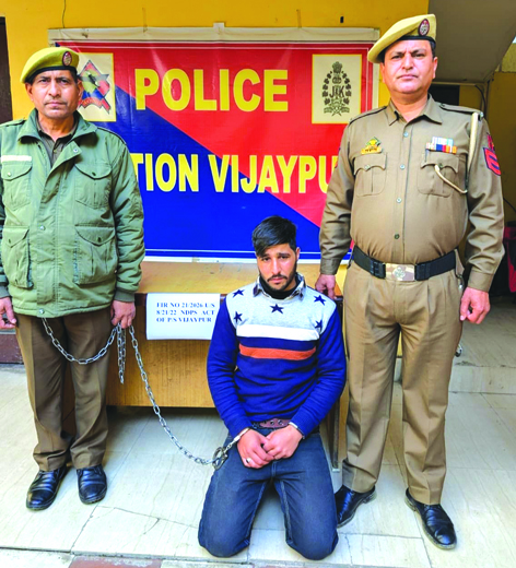 Early Times Report SAMBA, Jan 30: Continuing its drive against drug smugglers/peddlers, Samba Police has arrested a drug peddler in the jurisdiction of Police Station Vijaypur and recovered approximately 3.73 grams heroin-like substance (Chitta) from his possession. A Police team of Police Station Vijaypur during special Naka at Rakh Barotain road near AIIMS residence complex Vijaypur, intercepted a pedestrian who was moving under suspicious circumstances. During frisking, approximately 3.73 grams of heroin-like substance (Chitta) was recovered from the possession of said person. The drug peddler identified as Arshad Ahmed S/o Mohd. Hafiz R/o Samote tehsil Surankote district Poonch has been arrested and the contraband item has also been seized. A case FIR No 21/2026 U/S 8/21/22 NDPS Act has been registered at PS Vijaypur and investigation started. |