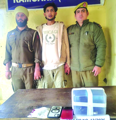 | Hardcore criminal nabbed with pistol alongwith 5 live cartridges | | | Early Times Report SAMBA, Feb 11: In a significant action against crime and drug trafficking, Samba Police apprehended a hardcore criminal-cum-drug peddler in the jurisdiction of Police Station Ramgarh and recovered a pistol along with five live cartridges and approximately 20.23 grams of heroin-like substance (Chitta) from his possession. Acting on information received from reliable sources, a team of Police Station Ramgarh laid a special naka on Rajpura-Jattan Road near watertank and intercepted a pedestrian under suspicious circumstances who was coming from village Khour side and moving towards Swankha. During frisking, one pistol alongwith 05 live cartridges and approximately 20.23 grams of heroin-like substance (chitta) were recovered from the possession of said person. The hardcore criminal identified as Ranju Choudhary S/o Kuldeep Singh R/o Kathar tehsil Arnia district Jammu has been arrested. The police has seized one pistol alongwith 05 live cartridges and contraband item on the spot. A case FIR No. 12/2026 u/s 8/21/22 NDPS Act and 3/25 Arms Act has been registered at PS Ramgarh and investigation started. The whole operation was carried out by police team headed by SHO PS Ramgarh under the supervision of SDPO Vijaypur and under the overall supervision of SSP Samba. It is pertinent to mention here that the said accused is a habitual hardcore criminal and is involved in multiple cases including attempt to murder, assault on public servant, snatching and other heinous cases under the Arms Act registered at different Police Stations of district Samba and district Jammu. The details of the cases registered against the accused are as under:- 1. FIR No. 11/2020 U/S 8/21/22 NDPS Act of P/S Ramgarh. 2. FIR No. 19/2022 U/S 307/353/382/34 IPC of P/S Ramgarh 3. FIR No. 29/2023 U/S 307/452/323/504/34. IPC of PS Ramgarh 4. FIR No.74/2024 U/S 307/351(3) BNS of PS Ramgarh 5. FIR No. 10/2023 U/S 4/25 Arms Act, 34 IPC was registered at PS Arnia 6. FIR No. 61/2023U/S 341/323/382/427/34 IPC, 4/25 Arms Act registered at PS Arnia 7. FIR No. 99/2024 U/S 109/115(2)/324(4)/191(2) BNS 3/4/25 Arms Act of PS Kahana Chak, Jammu. 8. FIR No. 50/2020 U/S 341/323,506/34 IPC, 4/25 Arms Act of PS Arnia. |