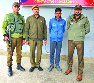 | Hardcore offender absconding for years apprehended by police | | | Early Times Report REASI, Feb 11: In a significant breakthrough, Reasi Police has achieved major success by apprehending an absconding accused who had been evading arrest in multiple criminal cases for several years. The accused, identified as Rakesh Kumar S/O Sham Lal R/O Ghordi, Ramnagar, District Udhampur, was wanted in connection with several criminal cases registered at different times, including: FIR No. 14/2017 U/s 475/380/201 RPC FIR No. 49/2019 U/s 452/380/384/323/201/34 RPC FIR No. 190/2022 U/s 457/380/201/34 IPC FIR No. 193/2022 U/s 457/380 IPC Besides the above-mentioned cases, a Non-Bailable Warrant (NBW) was also pending against him. Acting on specific inputs and after sustained efforts, a dedicated team of Police Station Katra launched a focused manhunt and successfully traced and apprehended the accused, who had been evading arrest for a considerable period. Following his arrest, the accused was produced before the Hon'ble Court for further legal proceedings as per law. The whole operation was carried out SHO P/S Katra Insp. Ranjeet Singh Rao, under the close supervision of SDPO Katra Dr. Bhishm Dubey, JKPS and SP Katra Vipan Chandran, JKPS. SSP Reasi Paramvir Singh-JKPS reiterated commitment to maintaining law and order in the district and ensuring that absconding accused persons are brought to justice. Strict action will continue against individuals involved in criminal activities. |