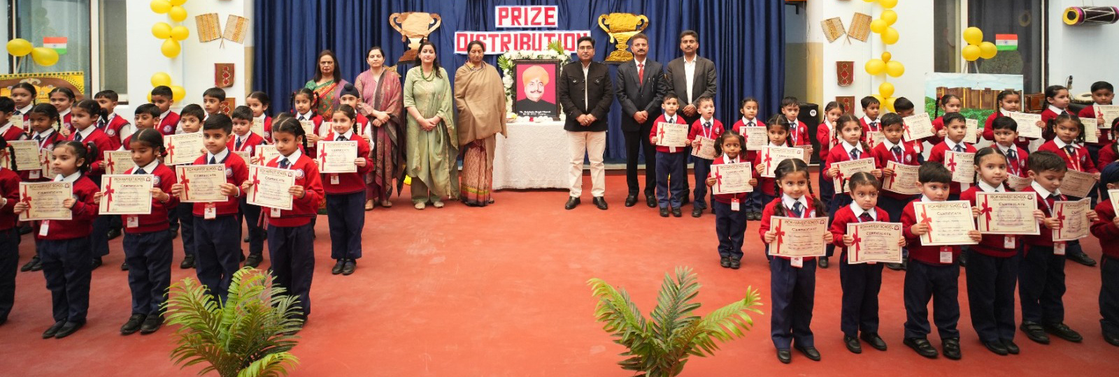 | RHS hosts grand annual prize distribution ceremony | | | Early Times Report JAMMU, Feb 24: RHS celebrated its Annual Prize Distribution Ceremony with great enthusiasm, blending academic excellence with vibrant cultural performances. The program commenced with the auspicious lighting of the ceremonial lamp followed by Saraswati Vandana, invoking blessings for wisdom and success. Students then mesmerized the audience with a colourful Dogri dance, showcasing the rich cultural heritage of the region. A soulful musical homage was presented in loving memory of Late Chairman Th. Gulchain Singh Charak. The heartfelt performance paid tribute to his visionary leadership, dedication and invaluable contribution to the growth of the institution. The tribute created an emotional atmosphere as the school fraternity remembered his enduring legacy with deep gratitude and reverence. The welcome address was delivered by the Principal, Anita Bhatia, who warmly greeted the illustrious guests, parents and students. She congratulated the achievers and appreciated the collective efforts of teachers and parents in nurturing excellence. The chief guest Surekha Charak-Chairperson SG Dogra Foundation, Special Guest ZEO Vijaypur-Surinder Balgotra, Dr Samar Dev Singh Charak--Secretary Dogra Educational Trust, Dr. Bela Charak--Principal Dogra Degree College, Adv. Gambhir Dev Singh Charak--Managing Director Rich Harvest School, Ruchi Charak-- Director Rich Harvest and Anita Bhatia-- Principal awarded prizes to the proud achievers for their outstanding academic performance. Special recognition was given to students who qualified prestigious competitive examinations NEET and JEE, bringing laurels to the school. Director Ruchi Charak, in her brief address, applauded the dedication of students and encouraged them to continue striving for excellence with determination and confidence. Surinder congratulated the high achievers in his motivating address. Managing Director Advocate Gambhir Dev Singhji Charak congratulated the awardees and emphasized the importance of discipline, hard work and strong moral values in achieving success. Dr. Samar Dev Singh Charak, in his short speech, motivated students to aim high, stay focused and embrace challenges as opportunities for growth. The ceremony concluded with the National Anthem, marking the end of a memorable and inspiring celebration. |