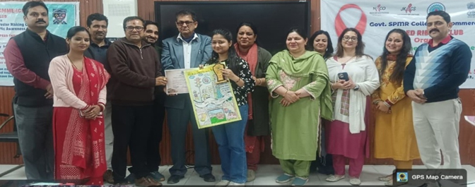 | SPMR College of Commerce organises Poster, Rangoli Making Competition | | | Early Times Report JAMMU, Feb 25: The Red Ribbon Club and Road Safety Club of Govt. SPMR College of Commerce organised a Poster Making and Rangoli Making Competition on the college campus with the objective of spreading social awareness and promoting creativity among students. Students from the disciplines of Commerce, BBA, and BCA enthusiastically participated in the competition and showcased their artistic talent through innovative posters and vibrant rangoli designs based on socially relevant themes. The event aimed to sensitize students and encourage creative expression while promoting awareness and social responsibility. Dr. Reena Rani, HoD Economics and Dr. Chetna Gupta HoD English, served as judges for the competition. They appreciated the originality, creativity, and thematic relevance reflected in the entries and commended the students for their sincere efforts. The worthy Principal of the college, Prof. (Dr.) Sunil Gupta, in his address, appreciated the initiative taken by the Red Ribbon Club and Road Safety Club and said, "Such activities play a vital role in nurturing creativity and awareness among students. Platforms like these not only enhance artistic skills but also help in building socially responsible citizens." He congratulated the winners and encouraged greater student participation in co-curricular activities. In the Poster Making Competition organised by Red Ribbon Club, Palak Sandhu of B.com 2nd sem secured the first position, second position was shared by Ashu of B.com 2nd Sem and Vaishali Devi of B.com 6th sem. Samridhi of BBA 4th sem and Tanishka Mehra of B.com 6th sem stood third. In the Rangoli Making Competition, Vishali Devi of B.com 6th sem, Bhavdeep Kour of B.com 4th sem and Anshu Kapoor of B.com 4th sem stood first, second and third positions respectively. Under the umbrella of Road Safety Club, poster making competition was also organised wherein more than 38 students participated among whom Ms. Palak Sandhu of B.com 2nd sem backed the first prize followed by Kashish Gupta of M.com 2nd sem who secured second position and Mahak Choudhary of B.com 4th sem gained third position. Certificates and prizes were distributed among the winners during the prize distribution ceremony. The proceedings of the event were conducted by Dr. Fayza and formal vote of thanks were presented by Dr. Jagmeet Kaur. The event concluded successfully with appreciation for the organizing committee members Dr. Jagmeet Kaur, Convener Red Ribbon Club, Dr. Vipul Chalotra, Convener Road Safety Club, Dr. Fayza, Dr. Madhu Bala, Prof Binny Kumar, Dr. Roomi Rani and Prof. Khalid Hussain whose dedicated efforts ensured the smooth conduct of the programme. The other faculty members present were Dr. Mohd Azam, Dr. Ashraf Nawaz, Prof. Sanjeev Verma, Dr. Rajni, Prof. Esha Abrol, Dr. Ridhi Sharma and Prof. Anju Gotra. |