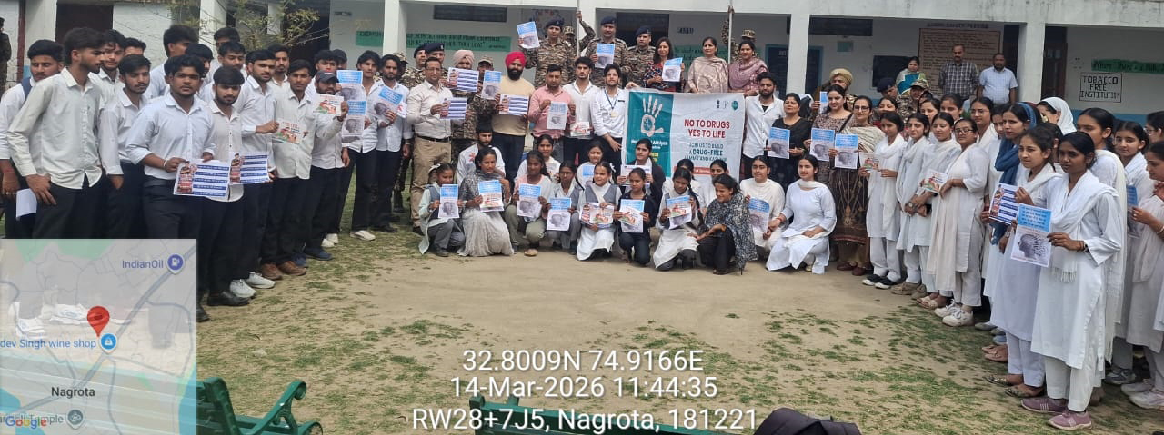 | Nasha Mukht Club organises Awareness Programme on Drug Abuse | | | Early Times Report JAMMU, Mar 14: The Nasha Mukht Club of Government Degree College Nagrota, in collaboration with the 160 Battalion of the Central Reserve Police Force (CRPF), Nagrota, organised an awareness programme on drug abuse in the college campus. On the occasion, the resource person from the 160 Battalion delivered an informative lecture highlighting the different types of drugs and their harmful consequences on individuals and society. The speaker also emphasised the importance of staying away from drugs and adopting a healthy and disciplined lifestyle. During the programme, the representatives of the 160 Battalion expressed their gratitude to the Principal, Prof. Anjali Mahajan, for organising such an important awareness programme for the students. They also informed the students about a 20-day training programme that will be organised for those who are interested in joining different paramilitary forces and serving the nation. In her address, Principal Prof. Anjali Mahajan appreciated the efforts of the Nasha Mukht Club for organising this meaningful programme and thanked the officers of the 160 Battalion for their valuable contribution in spreading awareness among the students. |