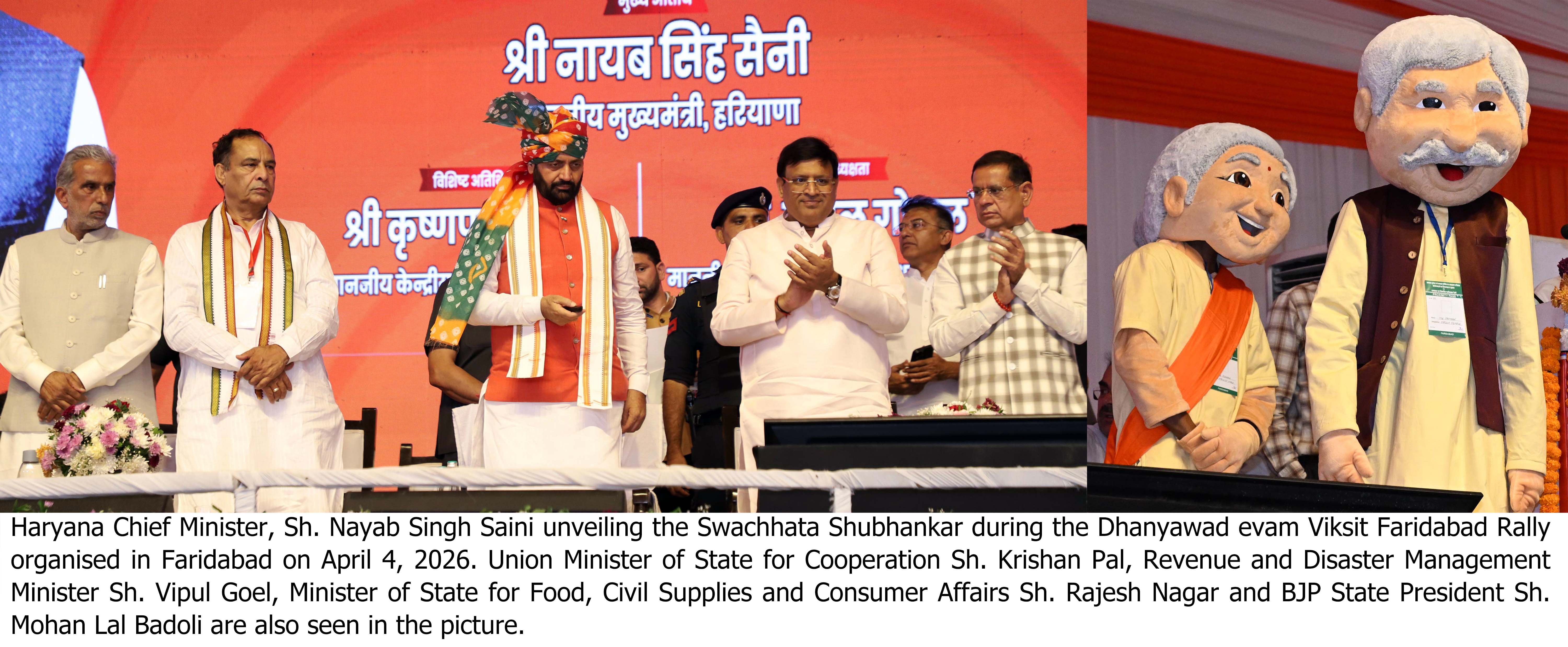 Chandigarh, Apr 4: Haryana Chief Minister Sh. Nayab Singh Saini, while addressing the Dhanyavaad Evam Viksit Faridabad Rally held in Faridabad on Saturday, said that over the past 11.5 years, unprecedented work has been carried out in Faridabad in the fields of infrastructure, connectivity, industry, Smart City development, metro expansion and digital services. Continuing this momentum, the Chief Minister laid the foundation stone for four major development projects worth Rs 120.76 crore to further accelerate the city’s holistic development. These projects include construction of a rest house at a cost of Rs 50.61 crore, construction of a dispensary-cum-CMO office at Rs 41.70 crore, laying of sewerage lines in various areas at Rs 25 crore, and construction of a school building in Old Faridabad at Rs 3.45 crore. The Chief Minister said the government is committed to making Faridabad one of the cleanest cities in the country. In this direction, the Chief Minister unveiled a cleanliness mascot and a cleanliness comic and appealed to citizens to actively participate in the cleanliness drive. Fast-Tracking CM Announcements and Manifesto Commitments The Chief Minister stated that 44 CM announcements have been made in this area over the past 11.5 years, out of which 24 have been completed, while work on the remaining is progressing rapidly. He emphasized that the government delivers on its promises, citing that 60 out of 217 manifesto commitments have been fulfilled within one and a half years, with work ongoing on the rest. He said that the vision of Viksit Bharat 2047 by Prime Minister Sh. Narendra Modi is being realized in Haryana through ‘Viksit Haryana’. The double-engine government has implemented the mantra of ‘Sabka Saath, Sabka Vikas, Sabka Vishwas, Sabka Prayas’ on the ground. Adequate Stock of Fuel and Gas Available The Chief Minister said that when the government focuses on development and public welfare, some opposition leaders attempt to spread misinformation and indulge in politics based on false promises. He expressed gratitude to the Prime Minister for reducing excise duty on petroleum products to provide relief to the public. He said even during global challenges, some opposition leaders try to create confusion among people, whereas the government is working sensitively to safeguard public interests. The Chief Minister clarified that there is no shortage of petrol, diesel, or LPG in Haryana, and adequate stock is available at all 4,032 petrol pumps and gas agencies in the state. He urged people not to pay attention to rumours and avoid panic buying. |