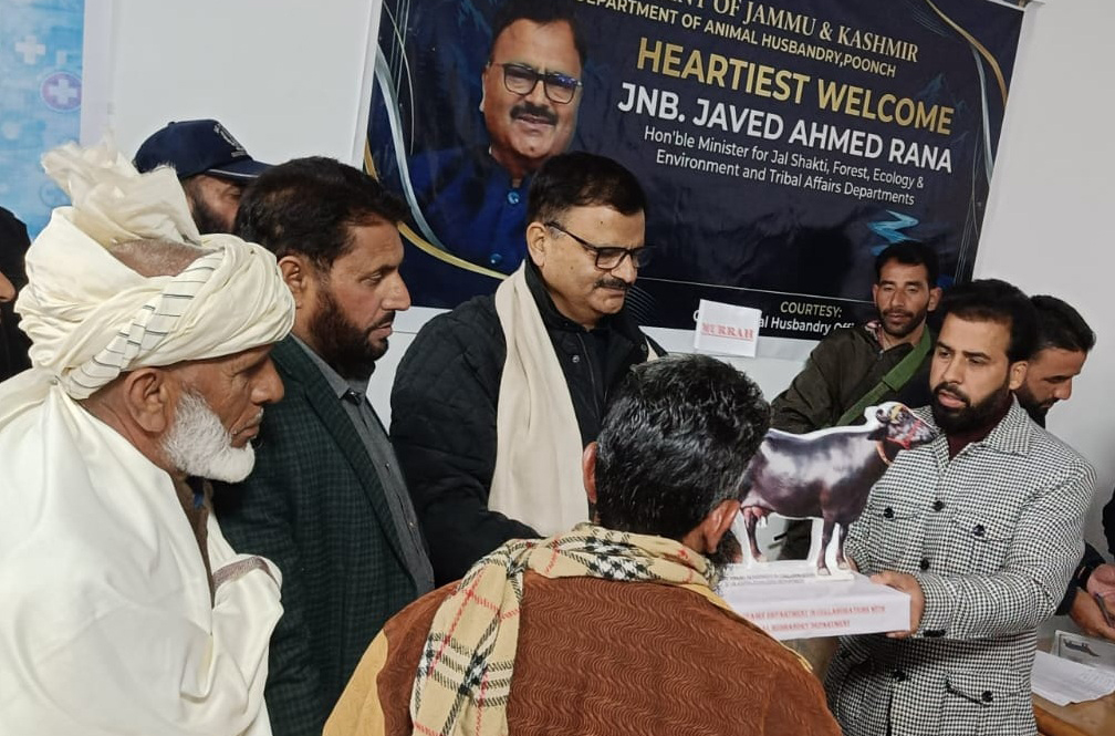 | Rana chairs facilitation programme for tribal livestock beneficiaries at Mendhar | | | Early Times Report MENDHAR, Apr 8: Minister for Jal Shakti, Forest, Ecology & Environment and Tribal Affairs, Javed Ahmed Rana, today chaired a facilitation programme at Mendhar, organized jointly by the Animal Husbandry and the Tribal Affairs Department. The event aimed to strengthen the livelihood opportunities among the tribal communities through focused development interventions. It was conducted under the Tribal Sub-Plan (TSP) Scheme, a targeted initiative aimed at uplifting the economically disadvantaged tribal populations. Under the scheme, the beneficiaries from five remote villages in the Sub-Division Mendhar successfully procured 52 Murrah buffaloes from outside J&K. The initiative follows a structured funding pattern, wherein 90 percent of the cost is borne by the government while the remaining 10 percent is contributed by the beneficiaries, ensuring both support and participation. This approach is intended to promote sustainable income generation by encouraging livestock-based economic activities among the tribal farmers. The Minister described the initiative as a meaningful step towards promoting livestock-based livelihoods and highlighted its potential to significantly improve the socio-economic conditions of tribal communities in the area. During the facilitation programme, emphasis was laid not only on asset distribution but also on ensuring the long-term productivity and health of the livestock. Each beneficiary who acquired a Murrah buffalo was provided with a medicine-cum-first aid kit to address basic veterinary needs, along with a certificate of participation acknowledging their involvement in the scheme. These measures are aimed at enhancing the animal care practices and improving dairy productivity, thereby contributing to the economic stability of the beneficiaries. The event was attended by the Chief Animal Husbandry Officer, Poonch besides Veterinary Assistant Surgeons and other departmental officials. |
