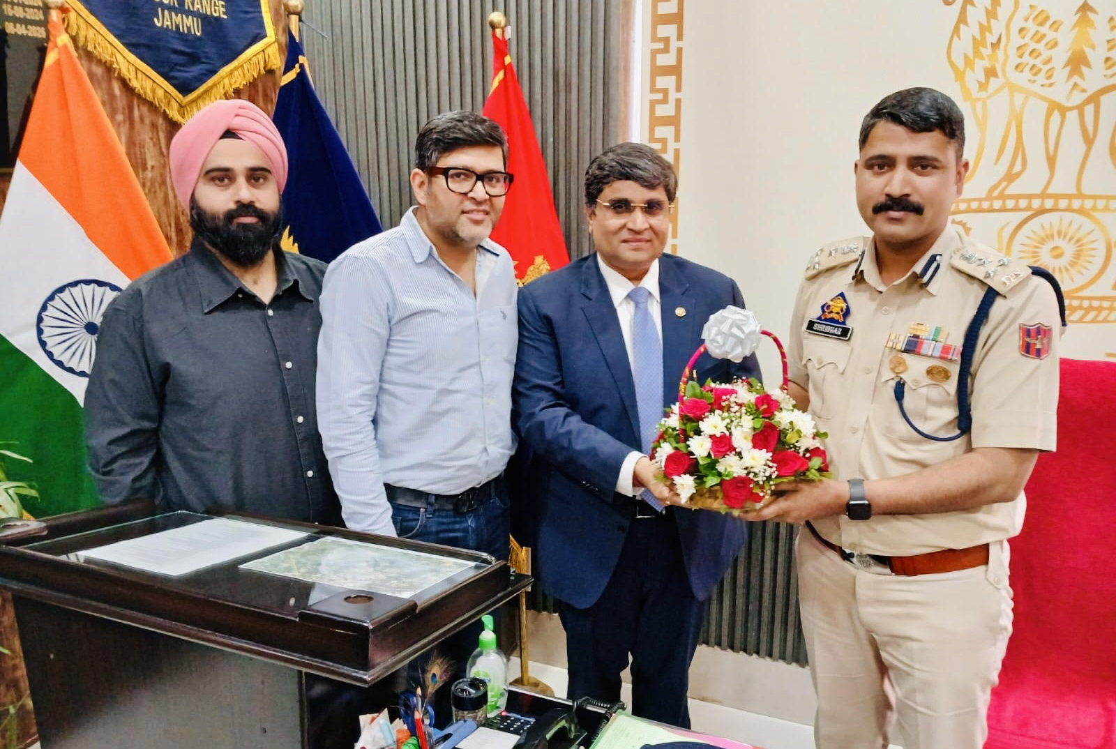 | Indian Chamber of Commerce Jammu calls on newly appointed DIG | | | Early Times Report JAMMU, Apr 8: A delegation of the Indian Chamber of Commerce (ICC), Jammu Chapter, led by its Chairman, Mr Rahul Sahai, called on the newly appointed Deputy Inspector General (DIG) Jammu, Shri Shridhar Patil (IPS) , to extend a warm welcome and congratulate him on assuming charge of the Jammu range. During the meeting, the delegation conveyed their best wishes to Shri Shridhar Patil for a successful tenure and expressed confidence in his leadership and administrative capabilities. The interaction was held in a cordial and constructive atmosphere, reflecting a shared commitment towards ensuring peace, stability, and growth in the Jammu province. The ICC delegation also deliberated on various pressing law and order issues affecting the region, particularly those impacting trade, industry, and the overall business ecosystem. Key concerns discussed included Long Pending Passport verifications,Drug's menace,ensuring a safe and secure environment for business operations, strengthening coordination between law enforcement agencies and industry stakeholders, and addressing challenges faced by the business community. Rahul Sahai along with Sh Ashish Jain , Sh Raj dua from ICC highlighted the importance of maintaining robust law and order to facilitate economic growth and attract investments in Jammu & Kashmir. He emphasized that a secure environment is critical for the development of trade, tourism, and industry in the region. Shridhar Patil appreciated the proactive approach of the Indian Chamber of Commerce and assured the delegation of full cooperation from the police administration. He reiterated his commitment to maintaining law and order and fostering a secure and business-friendly environment in Jammu province. The meeting concluded with a mutual understanding to maintain regular dialogue and collaboration between the police department and the industry body for addressing emerging concerns effectively. |