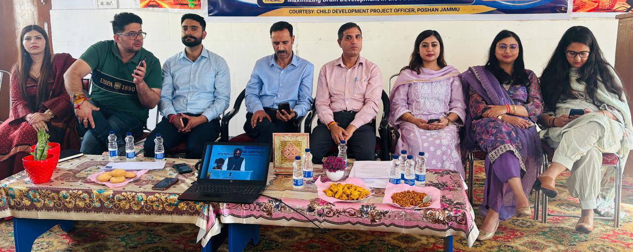 Early Times Report JAMMU, Apr 9: The 8th Poshan Pakhwada was inaugurated here today under the aegis of POSHAN J&K, marking the beginning of a focused awareness drive on nutrition and early childhood development across Jammu district. The programme was inaugurated by the Mission Director-POSHAN J&K Sajad Hussain Ganai. The event began with an auspicious opening ceremony, setting a positive and engaging tone for the initiative. The function was attended by the District Programme Officer, Poshan Jammu, Pankaj Anand along with all Child Development Project Officers (CDPOs) of the district, Supervisors, Anganwadi workers and beneficiaries. The central theme of this year's Poshan Pakhwada, "Maximizing Brain Development in the First Six Years of Life," remained the key focus of discussions and activities conducted during the programme. The inaugural event was also live telecast from Vigyan Bhawan, New Delhi, reflecting the nationwide observance of the initiative. A series of activities were organized including distribution of baby kits among beneficiaries and Vidyarambh certificates to children graduating from Anganwadi centres. ECCE (Early Childhood Care and Education) material was also distributed to strengthen early learning at the grassroots level. Speaking on the occasion, the Mission Director highlighted the critical role of proper nutrition, early stimulation and community participation in ensuring holistic development of children. The District Programme Officer emphasized the importance of coordinated efforts by field functionaries in achieving the objectives of POSHAN Abhiyaan. The programme concluded with a vote of thanks delivered by a CDPO Jammu, acknowledging the contributions of all stakeholders in making the event successful. |