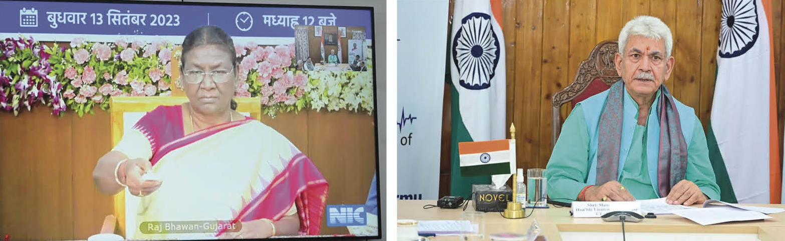 SRINAGAR, Sept 13: President of India, Droupadi Murmu today launched the ‘Ayushman Bhav’ Campaign and the ‘Ayushman Bhav’ portal. Lieutenant Governor Shri Manoj Sinha attended the launch ceremony, virtually, from Raj Bhawan. The event was followed by a UT-level programme organized by the J&K Administration. The Lt Governor expressed his gratitude to the President of India for the launch of the nationwide campaign which aims to saturate critical health care services in every village. The guidance of the President will motivate stakeholders to achieve the target of Health for All, he added. He said the three components of Ayushman Bhav campaign - Ayushman Apke Dwar, Ayushman Melas at Health & Wellness Centres, Community Health Centres and Ayushman Sabhas will enhance awareness and saturate health schemes in urban and rural areas. At the programme, the Lt Governor talked about the unprecedented progress registered by the country in health sector over the last few years. Despite the challenges of Covid, Conflict and Climate Change, India has achieved several milestones in health parameters for all the citizens. The reflection of the country’s achievements is also visible in the transformation taking place in the health sector of UT of Jammu Kashmir, he said. “My first duty and highest obligation is the health of the common man”, the Lt Governor said. He observed that the most valuable investment is to ensure Health for All. The Administration is making earnest efforts to provide accessible, affordable and quality healthcare to every citizen, he added. We have developed robust public health infrastructure in J&K and Universal Health Insurance Coverage, Digital health services have ensured an improved public health delivery system, the Lt Governor said. He said the use of modern technology has positively impacted diagnosis, treatment and patient monitoring systems. The Lt Governor called upon the health officials and all stakeholders to actively participate in the Ayushman Bhav Campaign and the upcoming Seva Pakhwada. He directed for convergence of the campaign with the celebration of Gandhi Jayanti and to promote the values of selfless service towards the people, especially the needy, poor and marginalized sections of the society. Swachhta Abhiyan should be carried out at Health Facilities across the UT, he added. On the occasion, the Lt Governor awarded Shopian, Pulwama, Ganderbal, Anantnag, Kathua, and Pulwama as best performing districts in ABHA ID generation, Golden Cards creation & distribution, NCD screening, examination & Diagnosis, registration in Ni-kshay mitras and distribution of Kits to TB patients, respectively. He honoured the Aarafah Food and Spices for adopting TB patients. The Lt Governor also distributed Nutrition Kits to TB patients and urged the people and the community leaders to register themselves as Ni-Kshay Mitras. Several events were organized at various levels across the UT to mark the launch of the Ayushman Bhav campaign and more than 1.22 lakh people, including ULB & PRI members from J&K were connected during the programme. Ayushman Apke Dwar 3.0 aims to provide Ayushman cards to remaining eligible beneficiaries enrolled under the PM-JAY scheme, ensuring that more individuals have access to essential health services. Ayushman Melas at HWCs and CHCs will facilitate the creation of ABHA IDs (Health IDs) and issuance of Ayushman Bharat Cards. They will also offer early diagnosis, comprehensive primary health care services, tele-consultation with specialists, and appropriate referrals. The above activities will start from 17th September and will continue till 31st December 2023. Rajeev Rai Bhatnagar, Advisor to Lt Governor; Dr Arun Kumar Mehta, Chief Secretary; Dr Mandeep Kumar Bhandari, Principal Secretary to Lt Governor; Bhupinder Kumar, Secretary Health and Medical Education and other senior officers were present at Raj Bhawan. | |