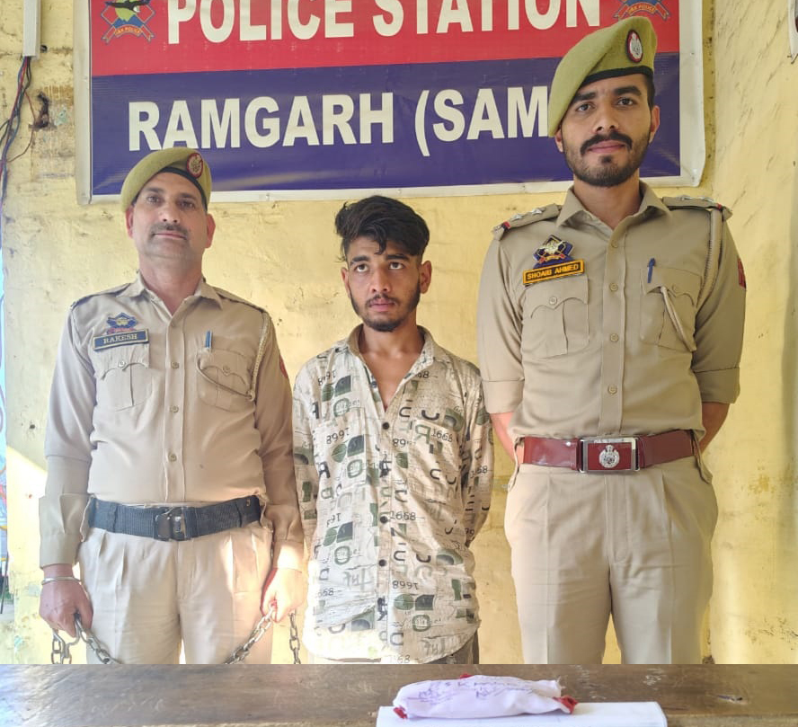 SAMBA, Mar 12: Continuing its drive against drug smugglers/peddlers, Samba Police has arrested a drug peddler in the jurisdiction of Police Station Ramgarh and recovered approximately 15.58 grams of heroin-like substance (chitta) from his possession. Acting on information received from reliable sources, a team of Police Station Ramgarh intercepted a pedestrian under suspicious circumstances who was coming from Rakh Barotian via Tarapur toward Gudwal side. During frisking, ap | |