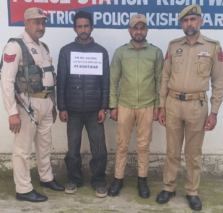 KISHTWAR, Apr 1: Continuing its sustained and intensified drive against drug trafficking under the ongoing War Against Drugs, District Police Kishtwar achieved another significant success by arresting a drug peddler and recovering a heroin-like (chitta) narcotic substance during naka checking near Sarthal Morh.