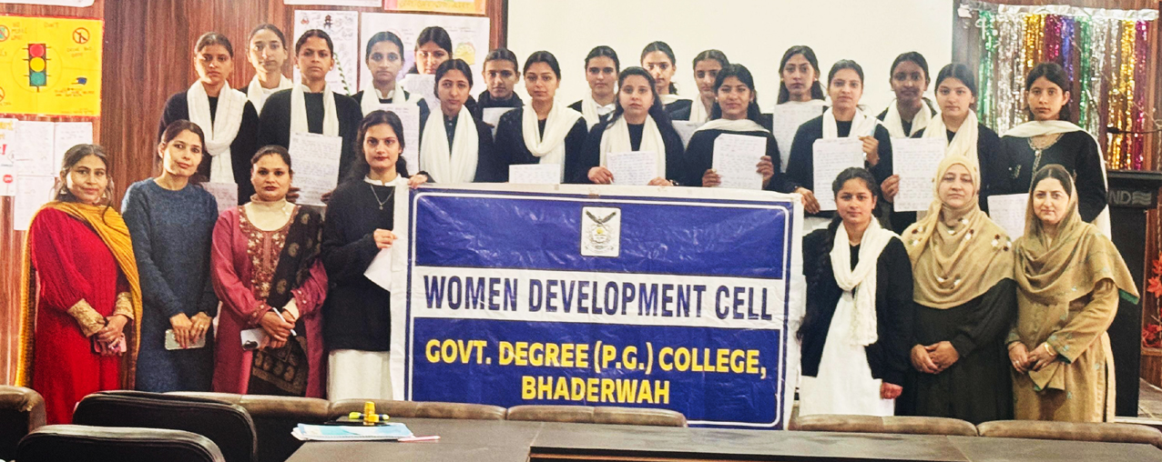 BHADERWAH, Mar 9: The Women Development Cell of Government Degree College Bhaderwah successfully organized an Essay Writing Competition today to commemorate International Women's Day, celebrated globally on 8 March every year.