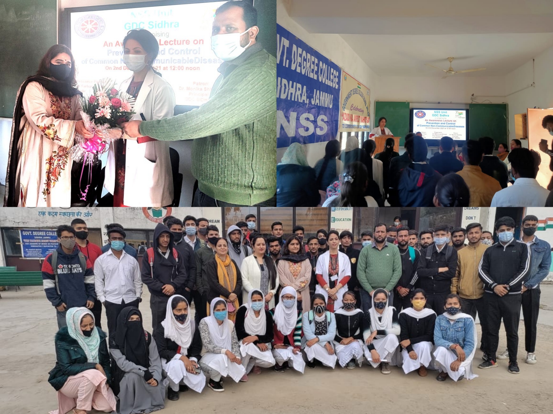 JAMMU, Dec 2: The NSS Unit of Government Degree College (GDC) Sidhra, under the banner of Azadi Ka Amrut Mahotsav and the theme “Swastha Bharat” organized an awareness lecture on “Prevention and Control of Common Non-Communicable Diseases (NCD)” for the students of the college. The resource person for the workshop was Dr Farhat Un Nisa, Medical Officer, PHC Bain Bajalta. The program began with a welcome address by Dr Mehmood Ahmed, Assistant Professor in Urdu, Program Officer NSS. The resource person apprised the students about what NCDs are, how these diseases occur and what are their different types. The resource person also deliberated upon how technology has contributed to a sedentary modern lifestyle leading to several lifestyle disorders. She also talked about various preventive measures related to these diseases. She motivated the students to spread awareness among the community and play an active role as NSS volunteers. The students participated in the awareness program with full enthusiasm that made the session interactive and interesting. The program was coordinated by Dr Harpreet Kour, Assistant Professor Department of Political Science and Prof Deepa Kak, Assistant Professor in the Department of Education. The proceedings of the program were carried by NSS volunteer Karsoom Akhter of BA Sem III. The program ended with a formal vote of thanks by Prof Deepa Kak. |