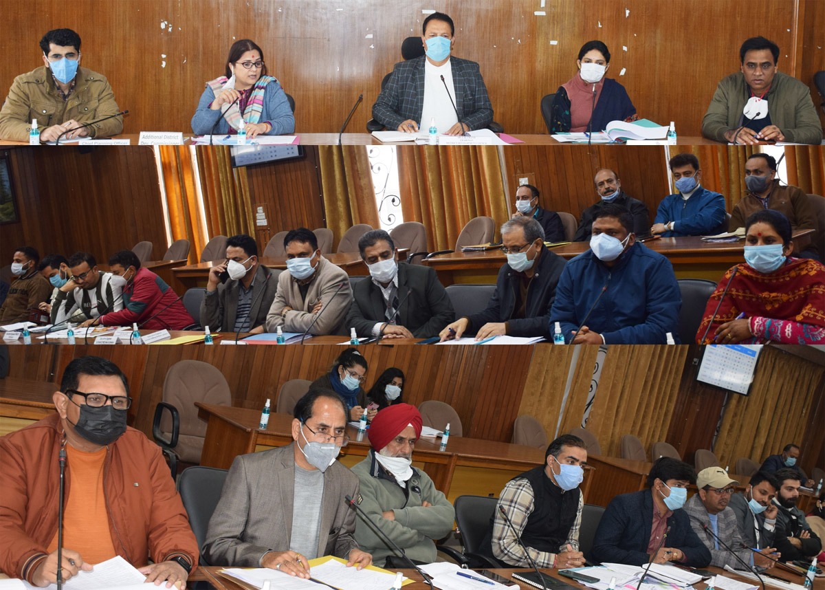 UDHAMPUR, Dec 2: To take the stock of the ongoing developmental works under taken by different departments in the district, today the District Development Council, Chairman Udhampur Lal Chand chaired the District Councils meeting attended by The DDC Vice Chairperson, Juhi Manhas Pathania, BDCs, DDCs and District officers. The meeting reviewed the progress of ongoing developmental works under District Capex budget 2020-21 and implementation of employment and other schemes. Threadbare discussion was held on various issues which includes review of capex budget 2021-22, awareness on SVAMITVA and land record information system, formulation of next year plan under capex budget 2022-23, IEC on Jal jeevan Mission, Janta ki Scheme Janta ki Bhaagidari etc were discussed in detail. Additional District Development Commissioner, Kanta Devi, ACR, Viqar Giri, ACD, Mushtaq Chowdhary all BDOs and other officers attended the meeting. At the outset, the ADDC Udhampur presented welcome address and gave a sector wise detailed power point presentation about the physical and financial progress achieved of ongoing developmental works being executed by PHE, PWD, PDD, Health, PMGSY, Forest, Education, JKEDA, Ground water, YSS and Handloom. While reviewing the sector wise progress, the DDC Chairperson exhorted upon the executing agencies to speed up the pace of work of all developmental projects and schemes and ensure their completion within stipulated time frame. Directions were issued to RDD to expedite tendering of works and ensure desired quality and progress of the works in rural areas. The Chairperson exhorted upon the officers to maintain the transparency and accountability in all the works being executed in the RDD sector and other sectors in the District. During the meeting, BDCs and DDCs raised several issues regarding PDD, PHE, Forest, Education. The Chairman directed the concerned to redress the issues. |