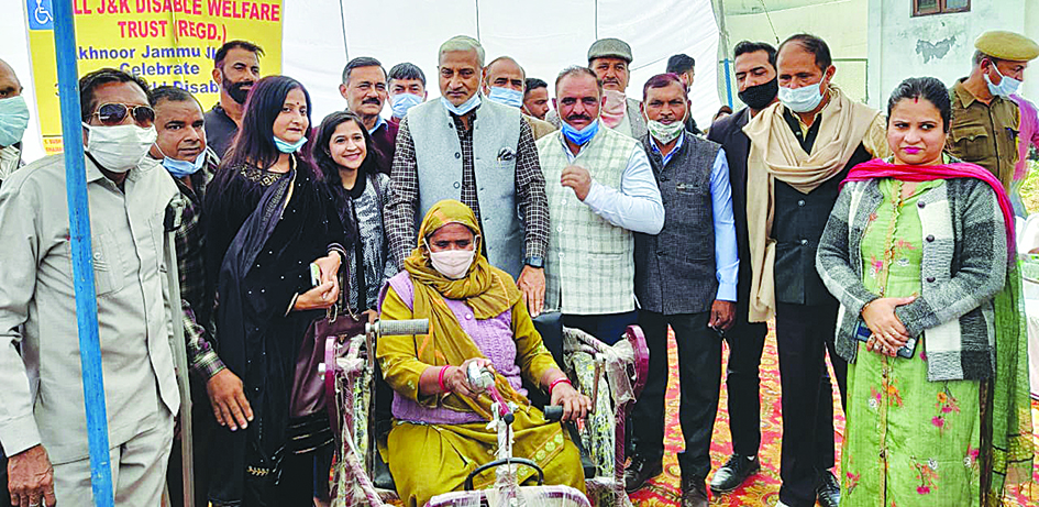 AKHNOOR, Dec 3: Former minister and Bharatiya Janata Party (BJP) UT Vice-President, Sham Lal Sharma has said that the BJP government led by PM Narendra Modi stands fully committed to provide succour to all the sections of the society with special focus on ameliorating the poor, needy and disabled persons. Sharma was speaking at a function organized as part of ‘World Disabled Day’, organized by All Jammu and Kashmir Disabled Welfare Trust, Akhnoor under the chairmanship of Trust Chairman Sushil Sharma here today. Sharma was the chief guest in the programme in which the chairman of the trust highlighted the problems being faced by the differently-abled people. Sharma appreciated all those present to celebrate the ‘Divyang Diwas’ in honour of this significant section of the society. He specially lauded the Trust management for organizing the programme on the day specially dedicated to the disabled persons besides providing basic facilities to the differently abled people. He said that the Trust is doing a commendable job by providing various facilities to this lot especially by presenting to them the specially designed scooties, tricycles, etc that enhance the mobility of such people. On this occasion, District Development Council member Bhalwal Brahmana Bushan Bral. , Dr Ashok Kumar, Chairman trust Sham Lal, Chairman Disable care foundation Umesh Sharma, Seema Mehra, Ritika Sharma, Tarsem Lal, Shamsher Singh, Sham Singh were also present. |