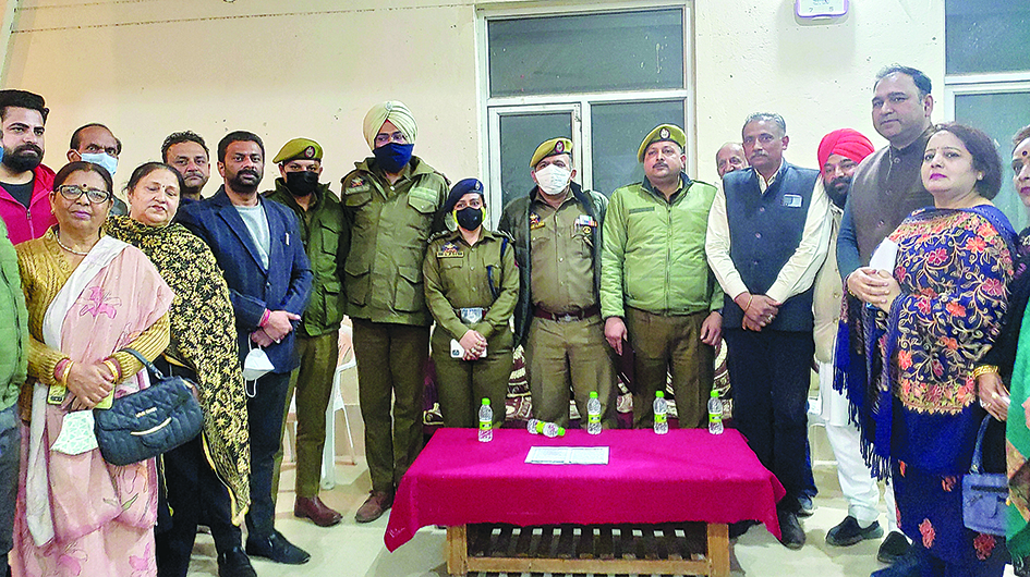 Jammu, Dec 3: BJP Talab Tillo Mandal led by it's President Keshav Chopra Organises Police Public meet at Mahajan Hall Talab Tillo in Which Deputy Superintendent of Police Hqrs Swati Sharma, SHO Nowabad Inspector Rajesh Khajuria, Incharge Police Post Talab Tillo PSI Rajesh Chowdhary along With Municipal Councillors Jeet Angral, Sucha Singh Neelam Nargotra, BJP Leader Ayodhya Gupta, Prominent Citizens, Shopkeeper Associations, Mohalla Committies, Social Workers and Youth of Talab Tillo attend The Meeting. Team Also Felecitated Outgoing Incharges of Police Post Talab Tillo Inspector Kalicharan Bains and Incharge Police Post Canal Road S.I Ravinder Singh for their Tremendous Work during their Previous Postings. During The Meeting Participants Have Raised Several Issues Related to Drugs, Traffic and Installing of CCTV's in Mohallas, Markets was Discussed. Ayodhya Gupta and Neelam Nargotra Raised the issue Of Drugs and requested The Police to Take Sharp Look on The People Involved In Selling drugs Jeet Angral and Sucha Singh Spoke about the Prevention of Negligent and Rash Driving and Requested the Police to check the driving License of the Teenagers as It can Prevent the Chance of Accidents. Keshav Chopra Appreciated The Role Of Police Department and Said that we are lucky that A Young Team Of Officers Working day and Night for The People, Keshav Chopra Expressed Gratitude to The Police Officials For Sparing Their Valuable Time to Listen the Grievances of the People. |