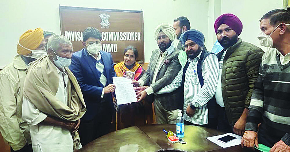 JAMMU, Dec 3: Member DDC Suchetgarh, Taranjit Singh Tony led a delegation of Gharana wetland farmers along with Sarpanch Gurdyal Singh Soni called on Divisional Commissioner Jammu Raghav Langer and raised their concerns with regard to ‘arbitrary’, ‘illegal’ action of civil administration and police on Thursday. The delegation submitted a memorandum of demands to the Divisional Commissioner Jammu. Tony said that by forcibly trespassing into the land chunks and houses of farmers the administration has taken law in its hand which calls for legal action. He said that farmers are subjected to crop losses due to migratory birds, but till date the government has not given a penny as compensation and now in the name of development is encroaching upon their land by initiating forcible fencing exercise. Tony said that how could the administration change the status quo by raising fencing? He also said that nearly 1700 kanals of land is being irrigated by the water body in the area by using pumps but with concerned department taking over the pond what will be the fate of these fields? He also said that department lodges FIR against farmers for disallowing the birds to sit in their fields which is again arbitrary and demanded that this trend should be stopped immediately. The delegation said that the present rate of land as settled by the J&K government is not acceptable and it should reconsider the same in the light of central government rules. The delegation also demanded full compensation for the loss of crop in the action taken by the administration yesterday as same was damaged to a great extent. |