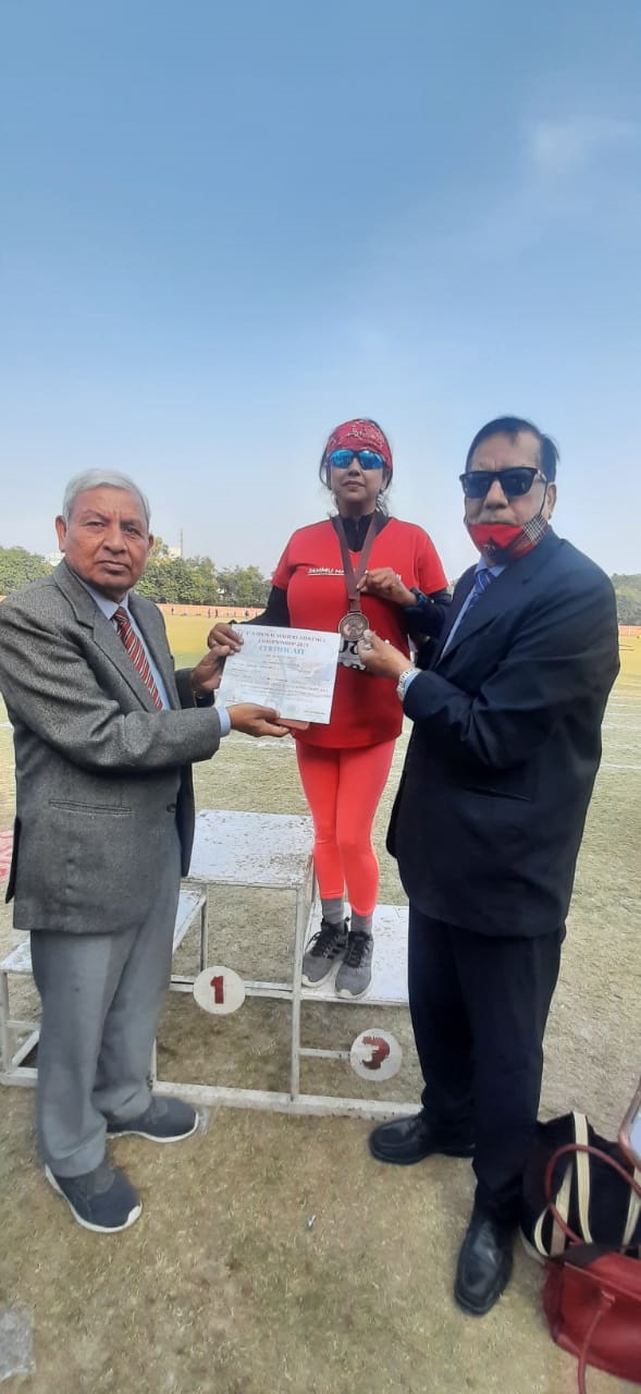 Jammu, Dec 3: Assistant Labour Commissioner, Jammu Devia Nanda Friday congratulated Seema Kharyal for winning Bronze Medal in National Masters Athletics championship held at Varanasi, UP from 27th Nov to 30th Nov 2021 making Labour department proud on her victory. Assistant Commissioner applauded her for setting an example for others to follow besides becoming an inspiration for youth fraternity and wished her for bright future. |