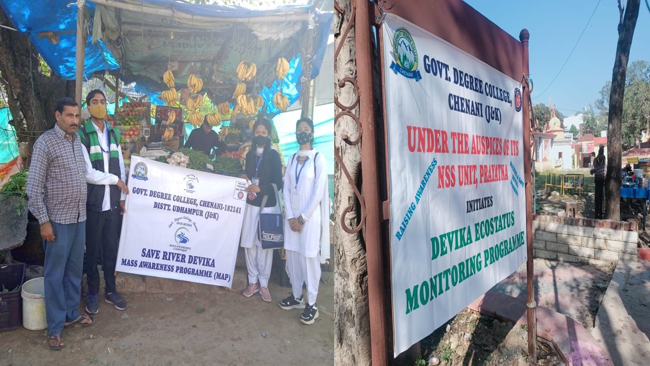 Early Times Report JAMMU, Dec 6: Government Degree College, Chenani conducted a programme with special focus on rejuvenation of Devika river and adjoining water bodies (Bowlis) with involvement of local community along with NSS Volunteers. The programme was undertaken as part of the Clean India Campaign under the national action plan. The students of college undertook an extensive one day mass awareness and cleanliness drive at the location which is considered to be a cost-effective and sensitive measure to impact the rising pollution in the river Devika premises and adjoining water bodies. The students educated the masses; viz., the general public in the temple premise, local residents, temple priests and the vendors & hawkers outside the complex. The Principal of the College, Dr. Pragya Khanna said that the college with its NSS volunteers is constantly providing help and assistance to the local administration and NGOs working towards the goal by undertaking such mass awareness programs to protect the sanctity of the water body under the research project "Hydro-chemical Impact Assessment, Study of Anthropogenic Pressure and Mass Public Awareness on Protection of Devika Stream and Adjoining Underground Sources of Water (Bowlis) at Dist. Udhampur, J&K". The research project is sponsored by the J&K Science, Technology and Innovation Council (JKSTIC), Department of Science and Technology, Govt. of J&K. The NSS volunteers of the college raised public awareness about water conservation as a necessity to increase peoples' knowledge of water resources, water use, and the need to conserve water. |
