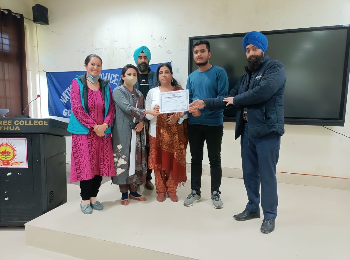 Early Times Report JAMMU, Dec 6: On the 65th anniversary of Baba Sahib Dr Bhim Rao Ambedkar, NSS units of GDC Kathua organised a symposium here on Monday, a statement said. It said that the programme was started with traditional lamp lightening. This day was celebrated as a Maha PariNirvana Diwas. The theme of the symposium was" Life Achievements of Baba Sahib Dr. Bhim Rao Ambedkar." Twenty seven volunteers took part in the symposium. Abhishek Singh, Alishea and Amisha Devi got first, second and third position in the competition. The other participants were acknowledged with consolation prizes. The event was judged by Prof (Dr) Rachna Devi, Department of Education, Prof(Dr) Kamaldeep Singh Head of Punjabi Department and Prof Isha Verma From Department of Hindi. On this occasion, NSS Programme officers Prof Manmohan Singh also throws light on the life achievements of Baba Sahib Dr Bhim Rao Ambedkar. The programme was organised under the patronage of Incharge Principal and supervision of NSS Prog officer Prof Ritu Kumar Sharma. The proceedings of the programme was conducted by Prof Neha Bandral. |