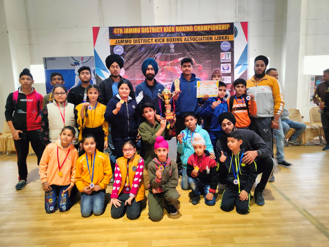 Early Times Report JAMMU, Dec 6: Students of RM Public School have brought laurels to the institution at recently concluded 4th district level kick-boxing championship. The competition, which was organized by Jammu District Kick-Boxing Association under the ages of Kickboxing Association J&K duly recognized by Ministry of Youth Affairs and Sports, Government of India, saw more than 200 participants from various schools and clubs of the district. The school team, which consisted of around 50 students, bagged the overall trophy under the able guidance of coach Nardeep Singh whose training and guidance helped them win a total of 46 medals which include 16 Gold medals, 12 silver medals and 18 bronze medals. Ajay Verma MD Nice Gem, Chief Guest and Gaurav Chopra, Corporator Ward no 28, Special Guest presented the medals and trophy to the school team. The Director of the school, Rakshan Mengi congratulated the students saying that "The sports are important part of the curriculum as they help shape the character of the students. The school is elated at the excelling performance of its students." The Vice Principal Mrs Kaajal Bhasin also applauded the performance of the students. |