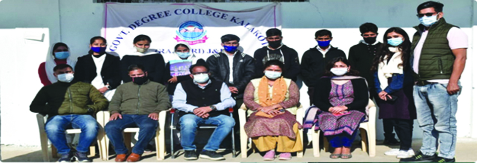 KALAKOTE, Dec 7: Under the aegis of “Azadi Ka Amrit Mahotsav” Government Degree College Kalakote in collaboration with NSS unit and J&K AIDS Control Society is observing a series of events on the eve of World AIDS day for the implementation of new India @75 3rd phase. Red Ribbon Club of GDC Kalakote with the support and guidance of Dr Romesh Kumar Gupta, Principal, GDC Kalakote organized a debate competition on “Blood Donation Awareness Campaign” in which a number of students took participation. The event was commenced with a formal speech by member of Red Ribbon club Dr. Tariq Rashid where he highlighted that giving blood can be a life saving action and provide a vital service to the community and donating blood can help in help in treating patients suffering from serious health ailments. Ruksana Kossar of BA Semester 5th bagged the First Prize, Pankaj Singh of BA semester 5th got the Second Prize and Komal of BA Semester 1st got the third prize in this competition. The judges of the event were, Dr Mohd Shakoor, Prof Priyanka Kumari, Vrinda Sharma and Pooja Rana. On the occasion, Principal GDC Kalakote, Dr Romesh Kr Gupta shared his valuable views on blood donation, and the essential contribution blood donors make to keep the world pulsating by saving lives and improve others health and also remarked that it reinforces the global call for more people all over the world to donate blood regularly and contribute to better health. The event was concluded with a vote of thanks given by Jyoti Devi. All teaching and Non teaching staff were also present in this occasion. |