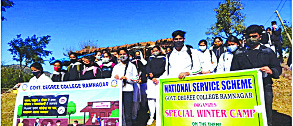 RAMNAGAR, Dec 8: NSS Unit of Govt Degree College (GDC) Ramnagar organized hand sanitization demonstration in adopted village Thaplal. The awareness programme was conducted as the part of Special Winter Camp organized in GDC Ramnagar w.e.f 6-12-21 to 12-12-21. The team visited the area in and around village Thaplal and interacted with the local people. The motive of the campaign was to spread the awareness and circulate the message of vaccination plan within the masses at their doorsteps. NSS volunteers raise slogans through poster presentations related the use of masks, soaps and sanitizes, social distancing and many more. NSS volunteers demonstrated the correct way of washing hand with soaps and provided the general masses basic hygiene methods and protocols to avoid COVID next variant. Masks, sanitizers and antiseptic soaps were also distributed among the people. The NSS Programme Officer Prof Ritika Mahajan visited the area along with the NSS volunteers to address the people about the concerns related COVID basic SOPs. Dr Udhey Bhanu, Principal GDC Ramnagar motivated the volunteers that such awareness and communication camps should reach the masses with the message that proper behavior and precautions like social distancing, washing hands frequently with soaps and avoid gathering must be followed by the people. |