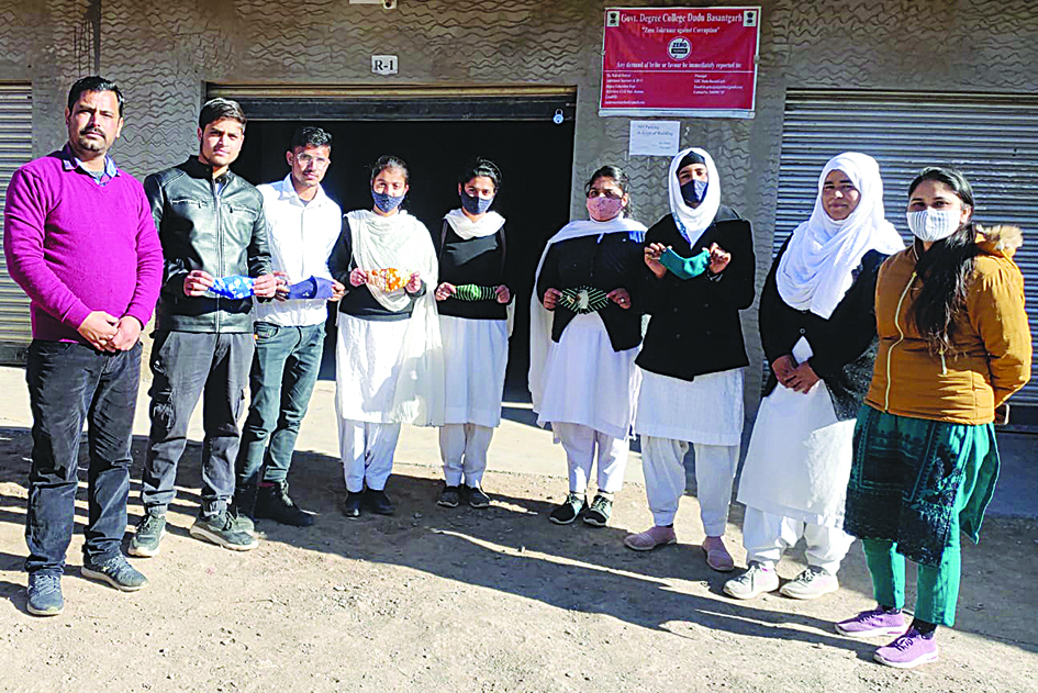 UDHAMPUR, Dec 8: Under the aegis of “Azadi Ka Amrit Mahatsov”, the Red Ribbon Club (RRC) of Government Degree College (GDC) Dudu Basantgarh organized mask making competition under the mushroom programme for the implementation of new India @75 3rd phase. While kicking the programme to start, Principal Dr. B. C. Anthal motivated the students to make own masks along with its proper use. He told the students to motivate the people of your locality in general and your family in particular about the wearing of mask in order to prevent the spread of this pandemic. Students of Red Ribbon Club of the college actively participated in the competition in which students of Semester III got first three positions. Poonam Devi got 1st. position while Akriti got 2nd position and 3rd position was bagged by Radha Devi. Anju Devi, Nazeer Ahmad and Dr. Ravi Kumar acted as jury members who keenly judged the masks prepared by students in terms of design, quality and economical grounds The program was organized by the Nodal Officer of RRC of the college Prof. Pradeep Kumar. The overall event was supervised by Prof. Rahul Sharma who congratulated the position holders and ended the program with vote of thanks. |