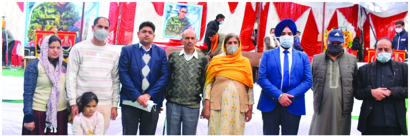 REASI, Dec 8: As a tribute to Martyr of District Reasi Granmorh to Tote Road was today named after Saheed SGCT Kamal Kishore here at a homage paying function. The move has come in pursuance to the decision of the Jammu and Kashmir Government to name Government Schools, Colleges, Roads etc after the Martyrs, who made supreme sacrifice to protect the Nation. Besides the Parents of the Martyr, Divisional Commissioner, Jammu Dr. Raghav Langer; ADGP Mukesh Singh; Chairman DDC Chairman Reasi Saraf Singh Nag; DIG Udhampur-Reasi Range Suleman Chowdhary, DC Charandeep Singh, SSP, Sarpanches and Panches paid rich tributes to the martyr during the function. The formal ceremony started with unveiling of Signages followed by floral tribute to the Martyr. On this occasion, the alumni along with local students presented an emotional tribute to Shaheed SGCT Kamal Kishore. An enthralling theatrical performance on the life of the martyr was presented which filled the air with emotion and feelings of pride. Speaking on the occasion, Dr. Raghav Langer reiterated that martyrs are the pride and inspiration for all future generations. “Martyrs become immortal for their act of sacrifice, valour and service to the motherland. We owe our freedom to the martyrs who ensure that every citizen lives peacefully” he said. The Div Com also expressed his gratitude to the family members of martyr Kamal Kishore for their strength and courage. Chairman, DDC also narrated his association with martyr Kamal Kishore. “He was a true gentleman who was always ready to die for the dignity and integrity of nation” the Chairman DDC said. In his address, the ADGP emphasized that the Martyrs live forever and reiterated that the Police department remains in close contact with the families of Martyrs for every type of help. He also explained that one can be a true citizen only when one has the desire to bear the pain for the welfare of fellow countrymen. Addressing the gathering, Deputy Commissioner Reasi Charandeep Singh said that it is a wonderful initiative by the Government through which ‘our present and coming generations will learn about the supreme sacrifices of the martyrs and will nurture a feeling of patriotism among the citizens’. He also emphasized on the need to celebrate such events every year in the honour of martyrs so that it always remains etched in generating memory. Charandeep Singh assured the family of the braveheart about the commitment of District Administration Reasi towards their well being and future endeavors and endowments. Speaking on the occasion, SSP Reasi said that the police department shall always remain indebted to martyr Kamal Kishore and assured all possible support to his family.