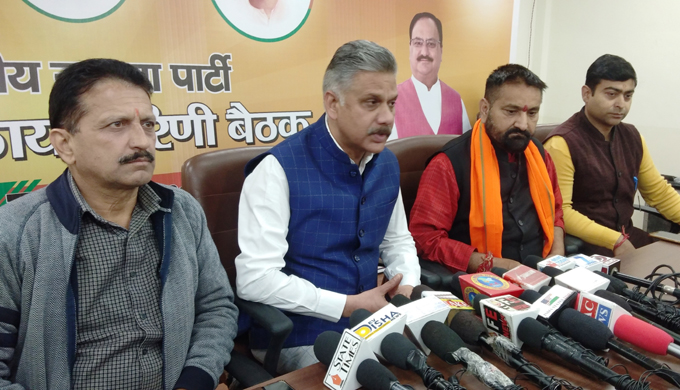 | BJP Govt on forefront to ensure welfare of farmers: Abhinav | | | Early Times Report JAMMU, Dec 9: The government led by PM Narendra Modi is on forefront to ensure welfare of farmers by revolutionizing the agriculture sector as never before. This was stated by J&K BJP Spokesperson Abhinav Sharma accompanied by BJP Kissan Morcha President Omi Khajuria, BJP Office Secretary Tilak Raj Gupta and BJP Media Secretary Dr. Pardeep Mahotra during a press conference, at Party Headquarter, Trikuta Nagar on Thursday. Abhinav Sharma said that never in the history of the country so much has been done for the tiller community by any of the successive governments. Particularly talking about farmers of Districts Jammu, Samba and Kathua, who were affected by gale, hailstorm and incessant rains recently, the BJP spokesperson informed that government in an unprecedented move has extended the grains procurement period till December 31, 2021, which was the burning demand of the farming community because due to vagaries of weather they could not harvest the crop in time. He said that the Modi Government is proving to be vanguard for welfare of farmers but they should also listen to the government for their own betterment. Abhinav expressed gratitude to the Union Agriculture Minister TS Tomar, MOS PMO Dr. Jitendra Singh and Lt. Governor Manoj Sinha for showing serious concern towards this genuine issue of farming community. He however appealed to the farmers to get their crops insured at the time of securing loans through Kissan Credit Cards through banks instead of depending on the government. The senior BJP leader also assured that the payment of farmers who have deposited their paddy in the procurement centres will be paid within a week's time. He said that the government has taken many historical steps for the welfare of farmers and Rs 2000 under the Pradhan Mantri Kisan Samman Nidhi (PM-KISAN) scheme is one among them. |
