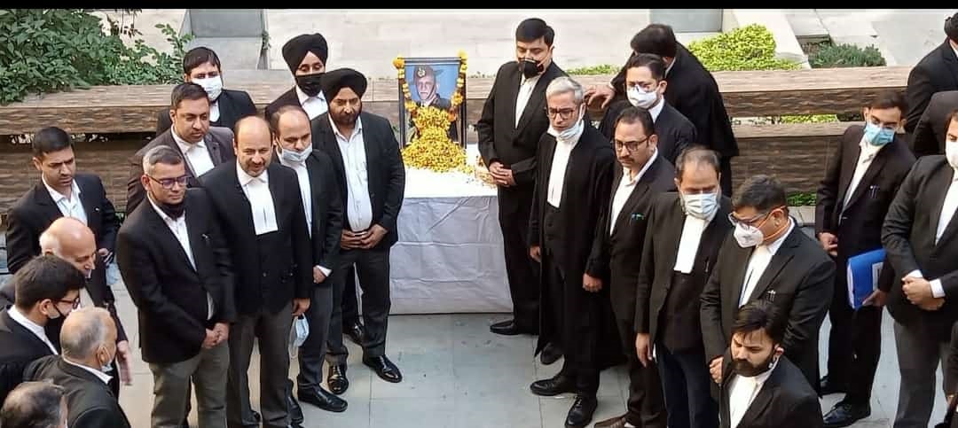 | JKHCBAJ pays homage to Gen Rawat, other victims of chopper crash | | | Early Times Report JAMMU, Dec 9: The J&K High Court Bar Association Jammu (JKHCBAJ) organized a Shardanjali Samaroh in J&K High Court Complex, Jammu to pay homage and tributes to Chief of Defence Staff General Bipin Rawat, his wife Madhulika Rawat and 11 other personnel of Armed Forces in the unfortunate and tragic demise in helicopter crash in Tamil Nadu Coonoor. M.K. Bhardwaj, Sr. Adv & President J&K High Court Bar Association, Jammu, while expressing heartfelt condolence to the families described that the country has lost brave and highly decorated soliders,. General Bipin Rawat was an excellent and outstanding solider of the country who has rendered his services bravely and dedicatedly and always elevated and raised name of the country in all National and International forums. The death of General Rawat has caused a irreparable loss not only to his own family but to the nation as a whole. The services rendered by General Rawat and his wife Madhulika Rawat will always be remembered by our country men. The members of the Bar also recalled and appreciated the services of 11 other Armed Forces personnel who were on board with General Rawat and his wife. The whole country is in shock and void created by the death of General Rawat, his wife and 11 other Armed Forces personnel cannot be filled. The contributions of CDS General Bipin Rawat and other soldiers were highly appreciated by the team of Bar Association for the marvelous job done for the country. All the lawyers' including senior and young lawyers were present on the Shardanjali Samaroh after laying floral tributes observed silence in the memory of departed souls. Two minutes silence was observed in the condolence meeting and prayer was made to the Almighty to grant heavenly peace to the departed souls, courage and strength to the bereaved families. Surjeet Singh Andotra Adv, General Secretary of the J&K High Court Bar Association, Jammu concluded the proceedings of Shardanjali Samaroh.. Others present in the Shardanjli Samaroh were the office bearers of the Association including Mohinder Pal Singh Pali, Vice President, Surjeet Singh Andotra General Secretary, Aditya Sharma. Joint Secretary, Amandeep Singh, Treasurer besides several others. |