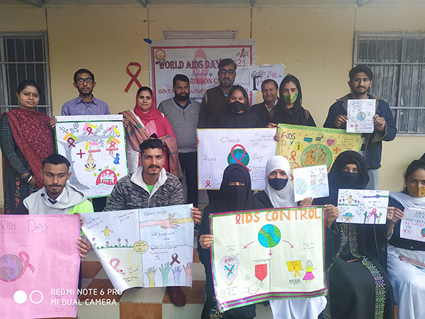 RAJOURI, Dec 9: The Red Ribbon Club of Government P G College Rajouri concluded the third phase of week-long activities under the new India @75 campaign here today. The programme was organized in collaboration with J&K AIDS Control Society (JKACS), Department of Health and Medical Education. Prof Shakeel Ahmed Raina, Principal of College inaugurated the week activities including HIV/AIDS awareness, tuberculosis, blood donation and Covid-19 in college that were co-ordinated by Dr. Naseem Ahmed, Nodal Officer of Red Ribbon Club of the college. At national level, the programme was launched in virtual mode by the National Aids Control Organization (NACO), a division of the Ministry of Health and Family Welfare, Government of India on the World AIDS Day, December 1 which was attended by members of Red Ribbon club of the college. |