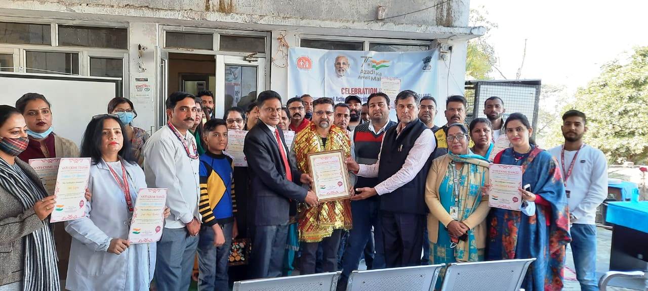 Early Times Report JAMMU, Dec 10: NGO Anti-Crime Team today felicitated Block Medical Officer M.L Rana besides doctors and staff members of SDH Marh. NGO volunteers were accompanied by BJP State Co-Convener Cooperative Society, Sham Lal Gupta. Chief Guest Surjeet Singh (Founder Milan Times and State Sangam Newspaper) along with Subash Chander Sharma Convener BJP, Deep Dayal Co-Convener BJP, Darshan Sharma Co-Convener BJP, Ashwani Sharma Co-Convener BJP, Sahil Gupta City President and Councillor MC Bishnah were also present on the occasion. Addressing the gathering, Sham Lal Gupta said that during the time of Covid-19 doctors and medical staff worked day and night for the welfare of general public. Chief Guest Surjeet Singh said that all this hard work has been done by the Corona Warrior doctors of the country, who have worked hard day and night during the Corona period. Doctors and staff members were honoured with an Appreciation Letter and Mata Ki Chunri. Members of NGO, Anti-Crime Team Bachan Kumar President Block Marh, Team Members Ghari Lal, Gagan Deep, Gourav Kumar, Ajay Bhagat, Mohit Sharma, Ayan Mehra and others were also present. |