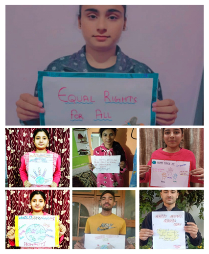 JAMMU, Dec 10: Red Ribbon Club & NSS unit, Government Degree College (GDC) Marh organized an Online Intra College Poster-making competition on the theme ‘’Equality, Reducing inequalities, advancing human right”, under the guidance of Prof Aekta Gupta, Principal GDC, Marh. In her address to students she said “A right is not what someone gives you it’s what no one can take from you”. Principal of the college appreciated the participation of the students and said that such activities play an important role in educating people about their basic rights. A number of students of the college participated, made posters on different sub themes related to human rights and presented slide show of the same. The programme was organsied by Prof. Anjana Chib (EVS) and coordinated by Prof Sachin Kumar (Pol Science) and Dr. Shakun Sharma, (Sociology). |