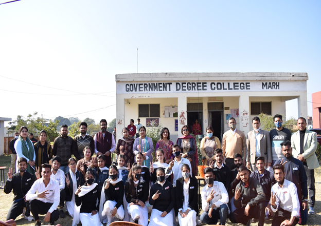 | GDC Marh holds investiture ceremony | | | Early Times Report JAMMU, Dec 11: Investiture ceremony was held at GDC, Marh today to entrust responsibility in the young leaders to discharge their duties honestly, sincerely and rest of their abilities. The programme was commenced was under the chairmanship of worthy Principal Prof. Aekta Gupta. Welcome address was given by Prof. Shallu Gupta. Fair elections were conducted by the election body of the college including Prof. Hans Raj, Prof. Madhvi Prasher, Prof. Ram Dayal and Prof. Ashu Jolly. Badges of different categories including Class Representatives (CRs), President, Vice-President, Joint Secretary etc were pinned up by the respected Principal Mam and staff members during the investiture ceremony. In the keynote address, Principal mam wished the students and congratulate the students for their leadership quality. The guest of honour was Principal, who said that each student is unique and have a potential to lead the college and in future all of them will be the nation builders. Pledge was administered by Student Welfare Committee and taken by the students where they promise to uphold the values and traditions of the college campus. After that torch ceremony took place in which lightening of torch was done by Principal and then handed to President and whole presidium of college as a symbol of performing all duties and responsibilities for the welfare of college. Student's body also represented themselves and expressed their feelings and gratitude towards the college. Prof. Shallu Gupta conducted the proceedings of the programme and vote of thanks was delivered by Prof. Ram Dayal. In the end, National Anthem was sung by all present in the ceremony. |