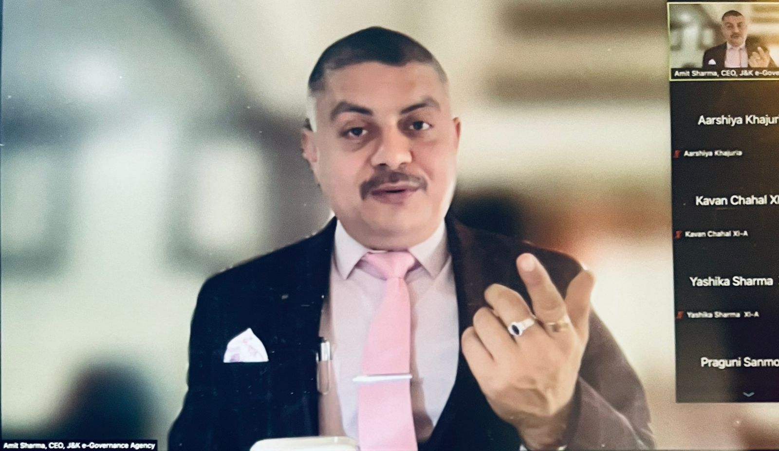 | Amit shares e-Gov perspectives with students of Presentation Convent School Jammu | | | Early Times Report JAMMU, Dec 11: Amit Sharma, Chief Executive Officer, J&K e-Governance Agency today enlightened students of Presentation Convent School Jammu about the e-Governance subject through virtual mode as a guest speaker. This guest lecture was organized by the administration of Presentation Convent School to create awareness about important subject of e-Governance amongst the higher classes students wherein shared various successful contemporary models like Passport Seva Kendra (PSK), Domicile Certificate, e-Office implementation in J&K, automated services of ticketing, Covid App, DBT, Aadhaar Enablement of citizens and similar other e-Governance initiatives as on date. Sharma shared ideas while motivating students to develop careers in this domain as e-governance experts wherein they can contribute immensely towards bringing transparency, swiftness and deliverance while provisioning Government services to the public in the present era wherein subjects like Artificial Intelligence, Drone Technology, MPLS Connectivity, etc hold a great future. He mentioned that the basic premise of all smart Ccty projects being implemented across the length and breadth of the nation including Jammu and Srinagar smart city projects have inherent tools of e-governance and even Ministry of Electronics and Information Technology has been running various courses and trainings to develop specialists in e-governance domain through various IIMs, NISG, etc like the one which CEO JaKeGA had undergone at IIM Indore almost a decade ago. |