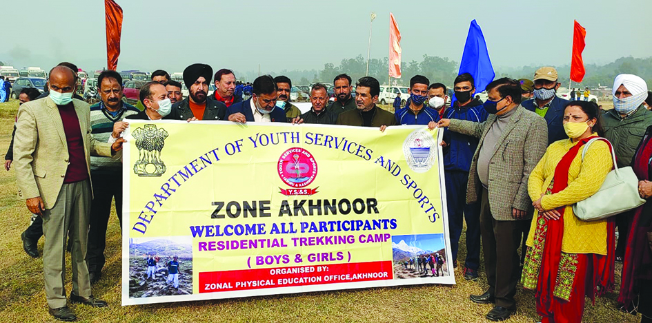 JAMMU, Dec 16: Department of Youth Services and Sports, Zone Akhnoor has organized a 5-day long Residential Trekking Camp at Samah for Boys and Girls under the chairmanship of District Youth Services and Sports Officer, Jammu Sukhdev Raj Sharma and overall supervision of Zonal Physical Education Officer, Akhnoor Tarsem Singh. The Trekking Camp was flagged off by the Principal Secretary of J&K, Youth Services and Sports Alok Kumar, Director Youth Services and Sports, Gazanfar Ali from Khel Gaun, Nagrota on 16.12 2021. About 130 trekkers (Boys and Girls) of different schools from Zone Akhnoor are participating in the Trekking Camp.
