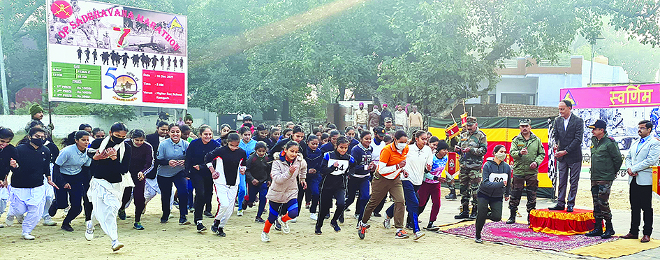 SAMBA, Dec 16: To mark the ‘Swarnim Vijay Diwas’ the Celebration of India’s Victory Over Pakistan in 1971 War, the 7th Battalion, of Jammu & Kashmir Rifles, in collaboration with District Administration Samba, today organised a marathon event for border youths at Ramgarh Tehsil of district Samba. In the event, 121 boys and 69 girls from adjoining villages participated in the 12 KM and 5 KM marathons respectively. Among the participants, Hansraj, Balvinder Singh and Sahil Choudhary begged 1st, 2nd and 3rd prizes respectively, while in girls Manta Sharma, Shanu Devi and Taniya begged 1st, 2nd, and 3rd positions respectively. The winners were presented with cash prize of Rs 15000, Rs10000 and Rs 5000 besides certification, caps and medals for all participants. Earlier, Additional Deputy Commissioner Samba, Suram Chand Sharma, in presences of Colonel Abhayraj Galander, flagged off the marathon of border youth from Government Higher Secondary Ramgarh where different cultural programmes by NCC cadets and singing with live band performance by the Boulders stole the show. Speaking on the occasion, the Additional Commissioner said that to mark 50th anniversary of India’s victory over Pakistan, a series of events were orgnaised under banner of operation sadhbhavana and mission youth including coaching classes for military schools, Bharat Darshan tour programme, counselling and interactive session with Army officers, KNOW YOUR ARMY programmes etc.. Among others District Information Officer, Ajay Sharma principal Higher Secondary School Ramgarh, Ashwani besides Army Officers and locals were also present. |