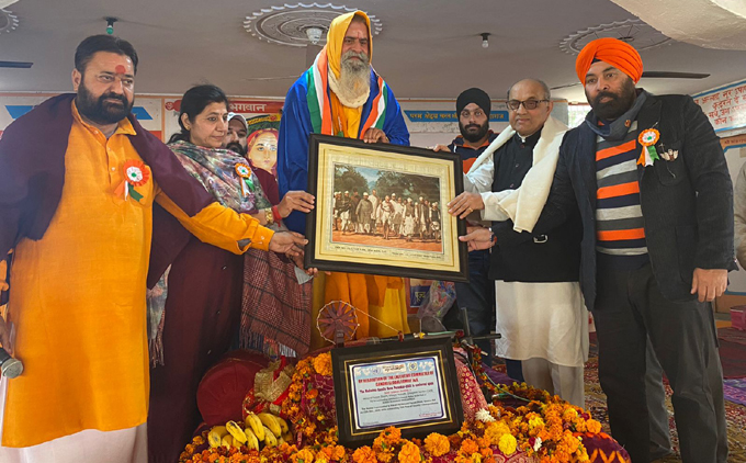 Early Times Report JAMMU, Dec 17: Mahatma Gandhi Sewa Puraskaar was conferred upon spiritual Guru Sant Subash Shastri in a simple but impressive program by Gandhi Global Family, J&K. The GGF delegation accompanied by Mahant Rajesh Bittoo, Chairman J&K Cooperative Union, Advocate Poornima Sharma, Honourable Deputy Mayor Jammu, S. Jaswinder Singh Kuku, advisor GGF, Jammu and a team of young Gandhians with Rajiv Bhargava, Harish Sharma and others presented him the prestigious honor for his outstanding contributions towards nation in the field of spiritualism, imparting quality education, welfare programs, community development and a service towards humanity and animals particularly cow protection by establishing ashrams country-wide. Bittoo described the Sant as great reformer who has given his full life into the service of mankind. Deputy Mayor read the citation of spiritual guru, Padmashri Dr. S P Varma, President Gandhi Global Family J&K described him as messenger of peace who is fulfilling the dreams of the father of the nation, Mahatma Gandhi, Bharat Ratna Sarhadi Gandhi. |