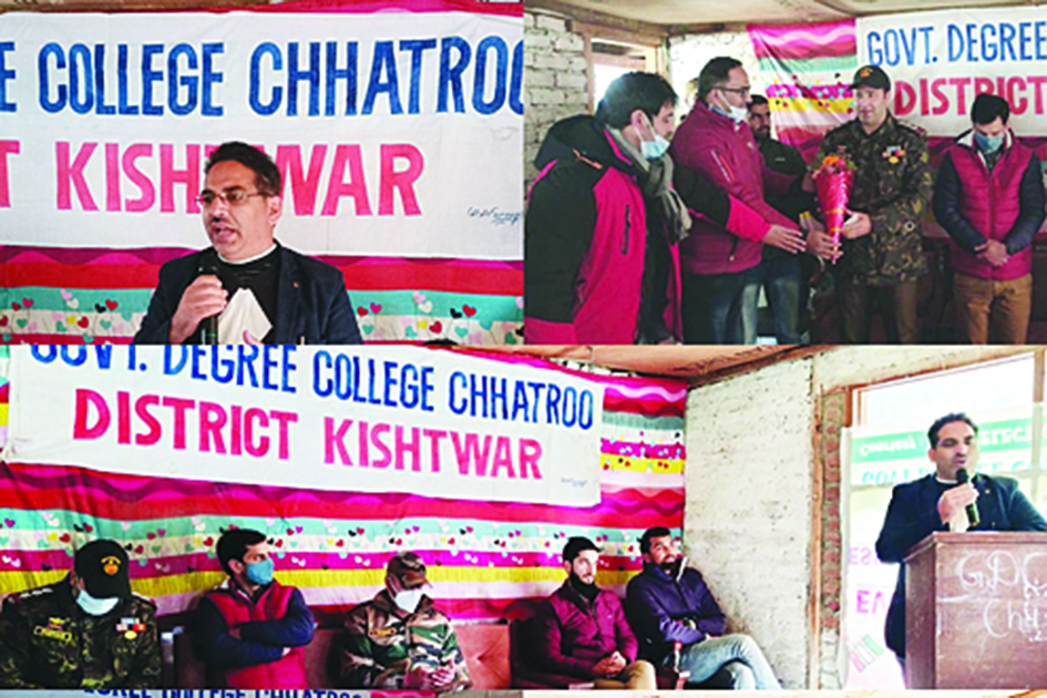 KISHTWAR, Dec 17: In order to aware the students about various academic options and careers ahead, the Career Counseling Cell of Govt Degree College (GDC) Chatroo under the aegis of Azadi Ka Amrit Mohatsav organized day long workshop. The workshop which was first of its kind in the college was arranged and managed by Dr. Jamsheed Ahmed, Head Department of English with close coordination of Dr. Ashaq Hussain under overall guidance and supervision of Dr Shafqat Hussain Rafiqi Principal GDC Chatroo. The day started with a welcome address by Dr. Jaswant Singh, Convener College Counselling Cell followed by the presentation of special eco-friendly bouquets prepared by the students to all the guests. The workshop was formally started with an introductory address by Dr. Jamsheed Ahmad in which he enumerated the need of career counseling programs at college level. Later on in order to provide multifarious options to the students, invited resource persons from various fields, who include Zakir Hussain Assistant Commissioner Panchayat Kishtwar, Major L. Bhatia 11 RR, Nayiem Iqbal Tehsildar Mughal Maidan, Tasleem Wani Block Development Officer Inderwal and Parvaiz Ahmed Station House Officer Chatroo interacted with the students and delivered lectures based on their respective fields and urged the students to set goals and build confidence to achieve success in their careers. Speaking on the occasion, Dr Ashaq Hussain while extending a special thanks to all the invited speakers, congratulated the Career Counseling Cell and the Department of English for this initiative. At the end an interactive question-answer session was arranged between students and the invited speakers which was the main highlight of the day. The proceedings of the workshop were carried out by Dr. Jaswant Singh Convener Career Counseling Cell in a coherent way. The workshop ended with a formal vote of thanks presented by Dr Muddasser Nazar.