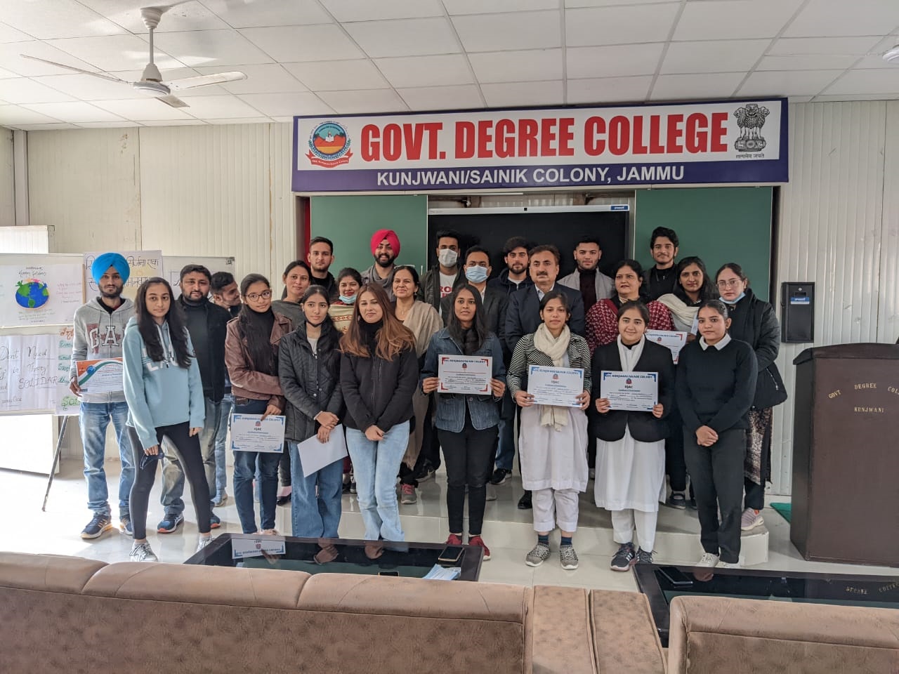 | GDC Kunjwani celebrates International Human Solidarity Day | | | Early Times Report JAMMU, Dec 20: IQAC of GDC Kunjwani Jammu organized slogan writing and poetry writing competition on the occasion of "International Human Solidarity Day" to raise awareness about the importance of solidarity. The programme was presided over by Worthy Principal of the college, Prof. Hans Raj. On the occasion, he spoke at length about the importance of human solidarity that it is a tool for reducing inequality and social injustice in the world, and he also highlighted solidarity can be cultivated through education in our students and help to build better world. Dr Arti Pandoh Gupta Convener IQAC presented a welcome address and highlighted that it is important to mutually share and respect for each other's diverse cultures, values and laws and to create a psychological sense of unity in diversity among different societies across the globe.The event also witnessed the participation of 30 students in slogan writing and poetry competition. In slogan writing Ist position was secured by Seeta Kumari of B.A. Vth semester, Second position was secured by Owais Mirza and Third position secured by Azmat Choudhary& Parteek Bali. In poetry writing competition Alina Shapoo B.A Semester-Vth, Mayuri Choudhary B.A semester-3rd were adjudged 1st and 2nd while the third position was shared by Sukanya Mahajan &Vanshika Gupta B.A semester-3rd& Ist respectively. Dr. Savtanter Kour, Dr. Neeru Sharma & Dr. Rohini Jamwal were the judges for slogan writing competition. Judges of the Poetry recitation were Prof Shri Kant Sharma, Prof Shamshad Bibi, & Dr. Sajaad Iqbal Khan. The formal vote of thanks was presented by Prof Bushra Nizami, HOD, Sociology. |